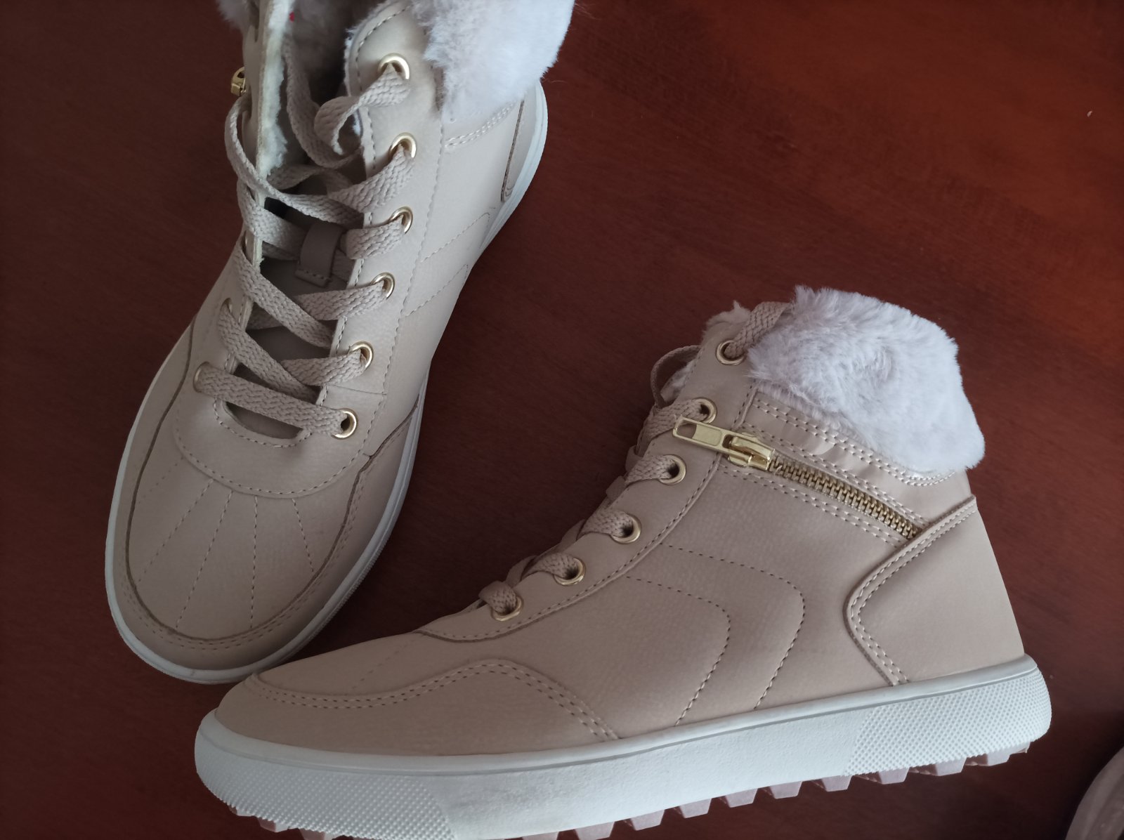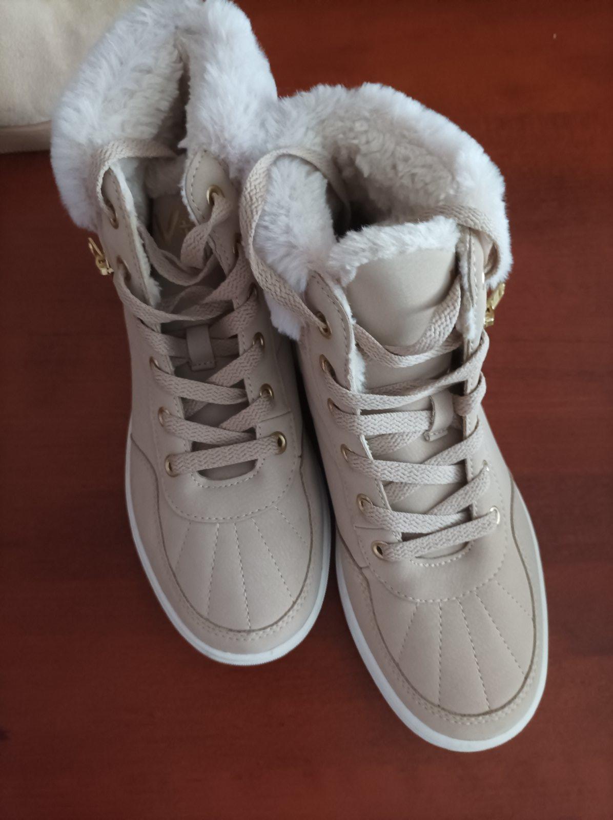 Kupované v daichmane obuté raz mali sme viac topanok a tieto dcéra ani nenosila. Stav nepoškodené. Veľkosť 38. Chlpatá cica ako nová.