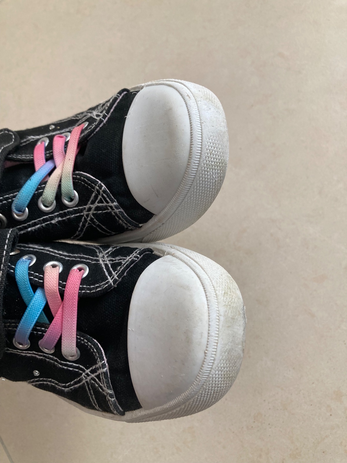 Nosené, vidno hlavne na podrážke. Suché zipsy držia dobre. Vnútro cca 19,5 cm.