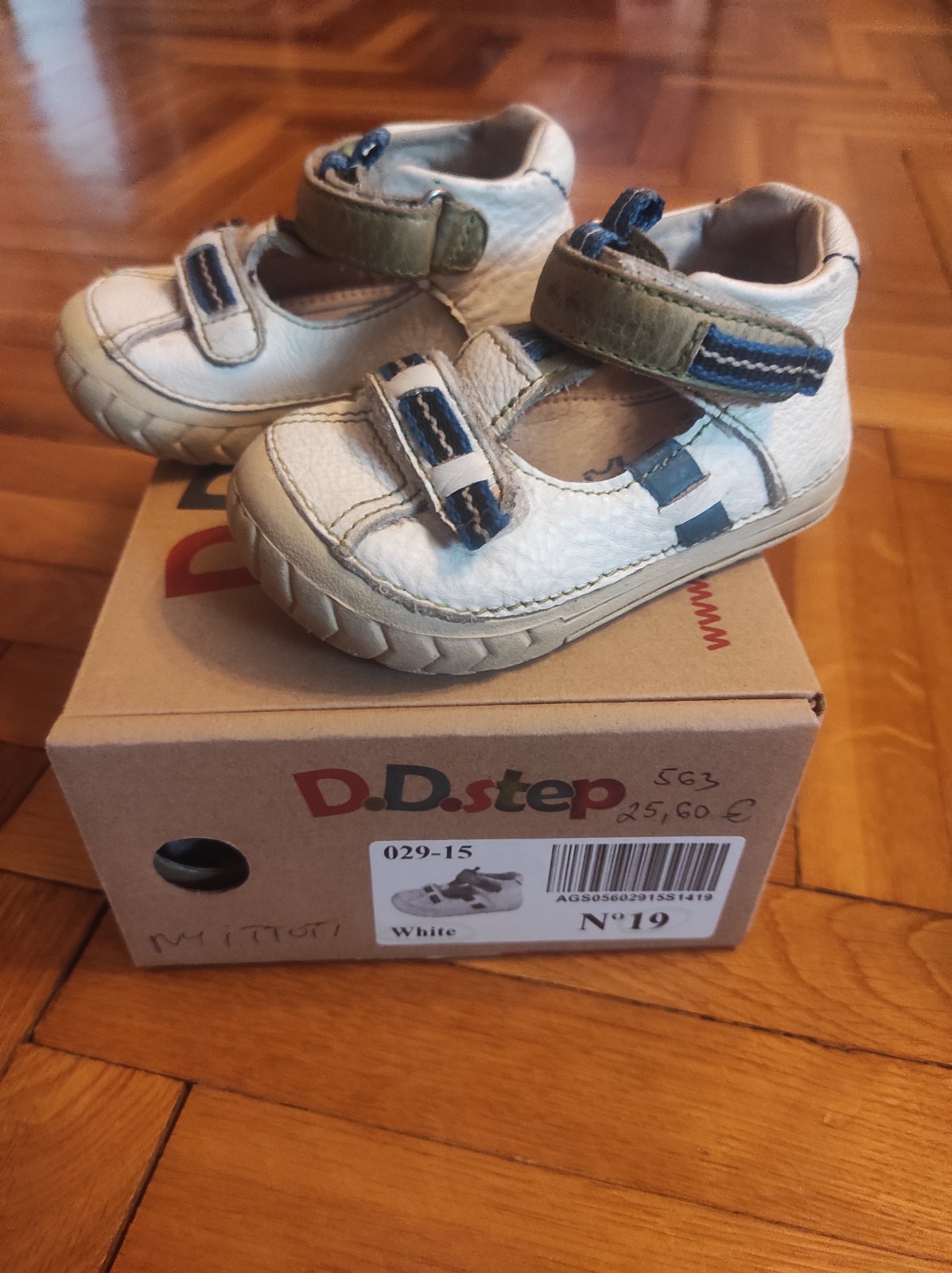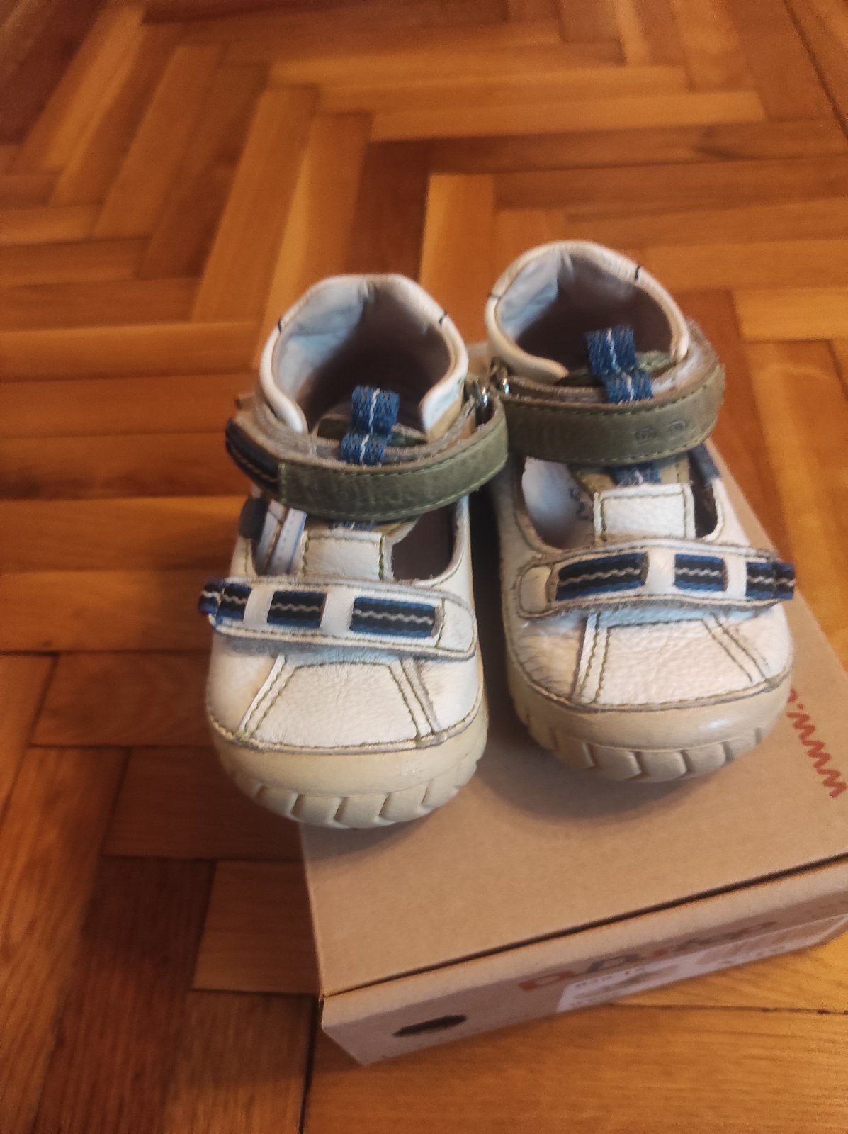 Predám, používané, trochu oškreté a ošúchané kožené sandálky D.D. step, nedajú sa lepšie vyčistiť, veľkosť 19, vnutorná dĺžka 12 cm, lepiaci pásik na zapínanie funguje stále dobre. Sú nosené - vi...