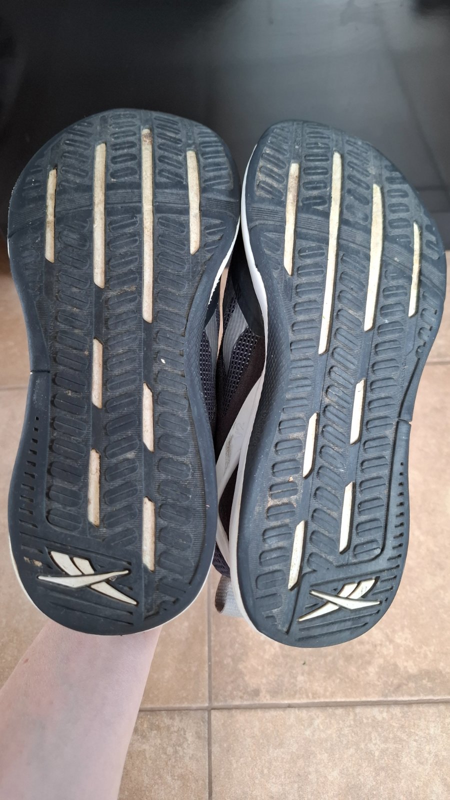 Tenisky v dobrom stave, na jednom mieste pri pravom malíčku sa povrchová guma zboku trochu odliepa viď foto