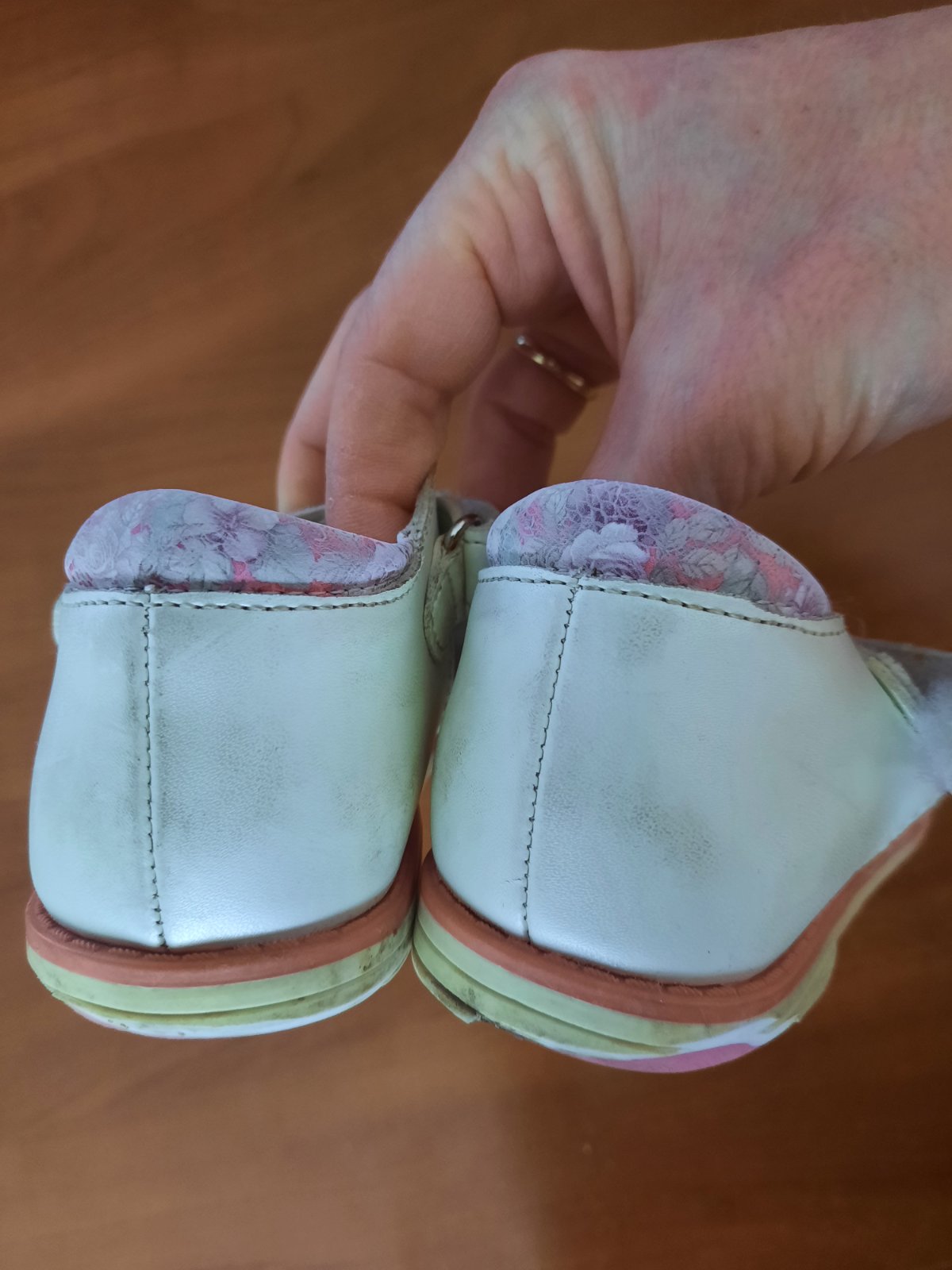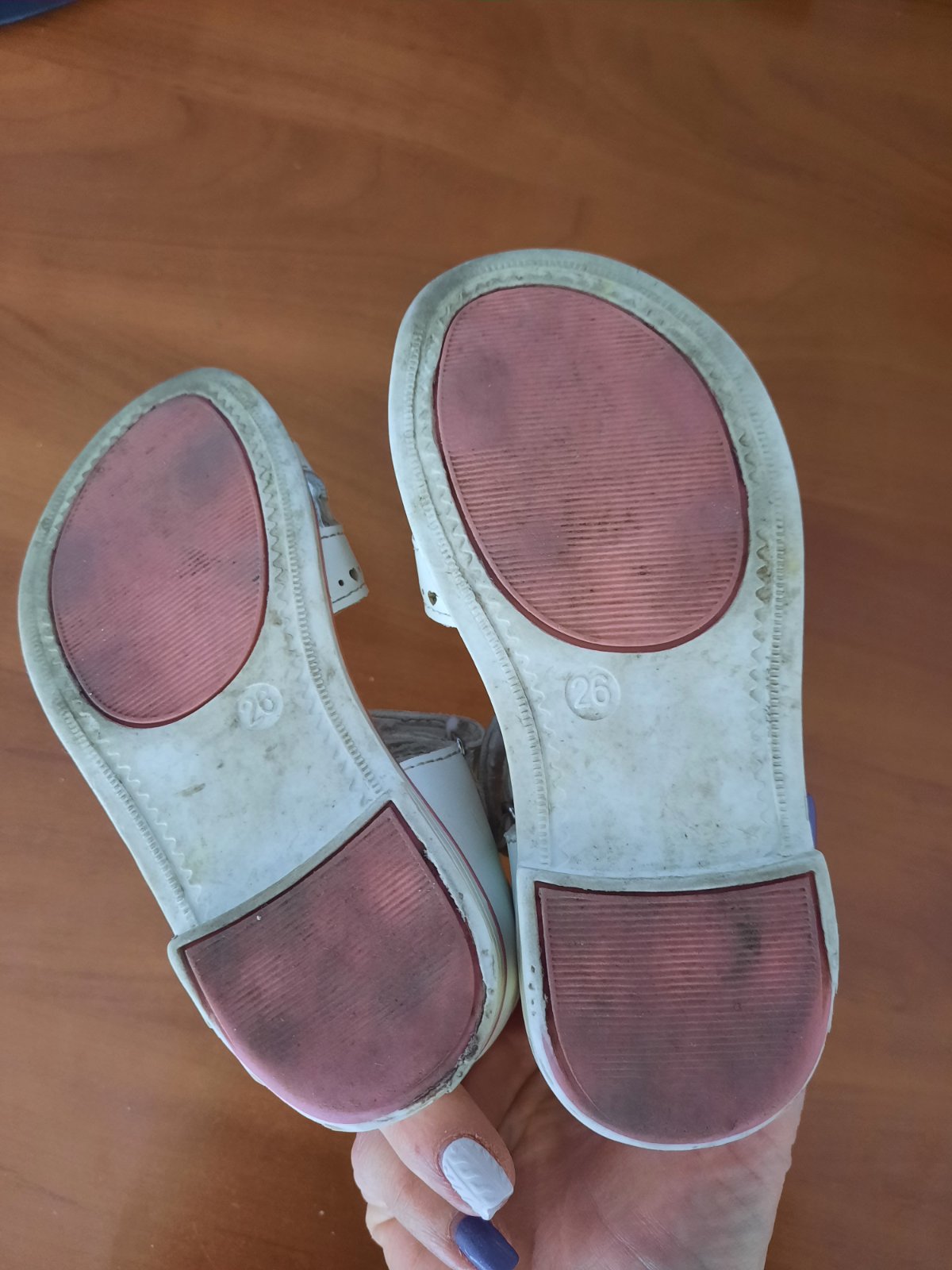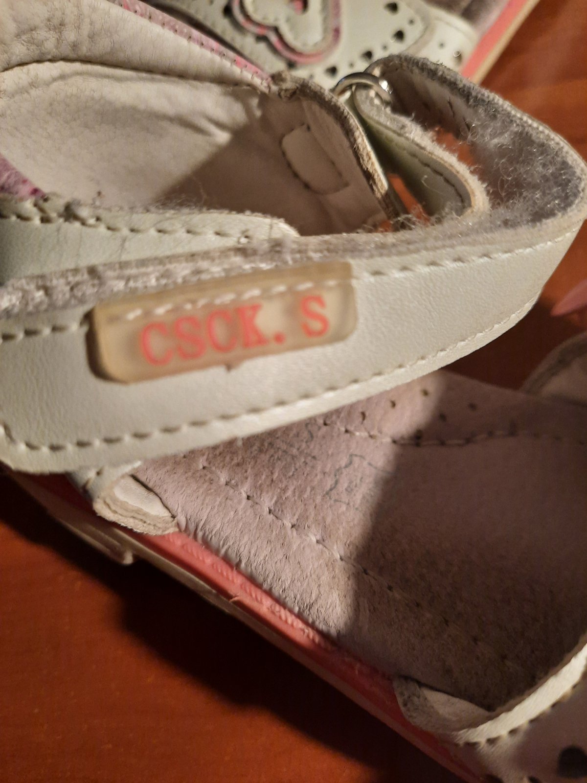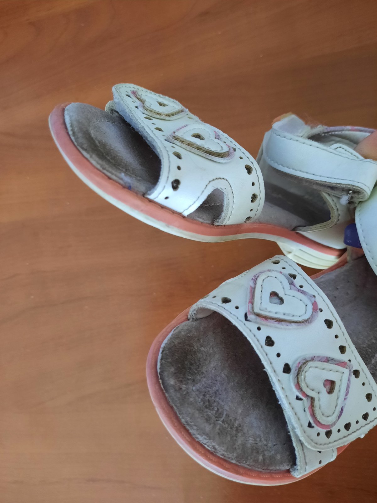 Pekné dievčenské kožené sandále so zapínaním na suchý zips. Super držia nohu. Podrážka je trošku z boku vyšúchaná. Vnútro je mierne ušpinené, ale dá sa vyčistiť. Ešte ich prečistím :-)