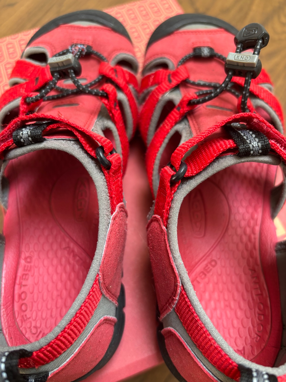 Len vyskúšané, priestranné keen sandále, tuhšia päta, vnútorná dĺžka 22.5 cm