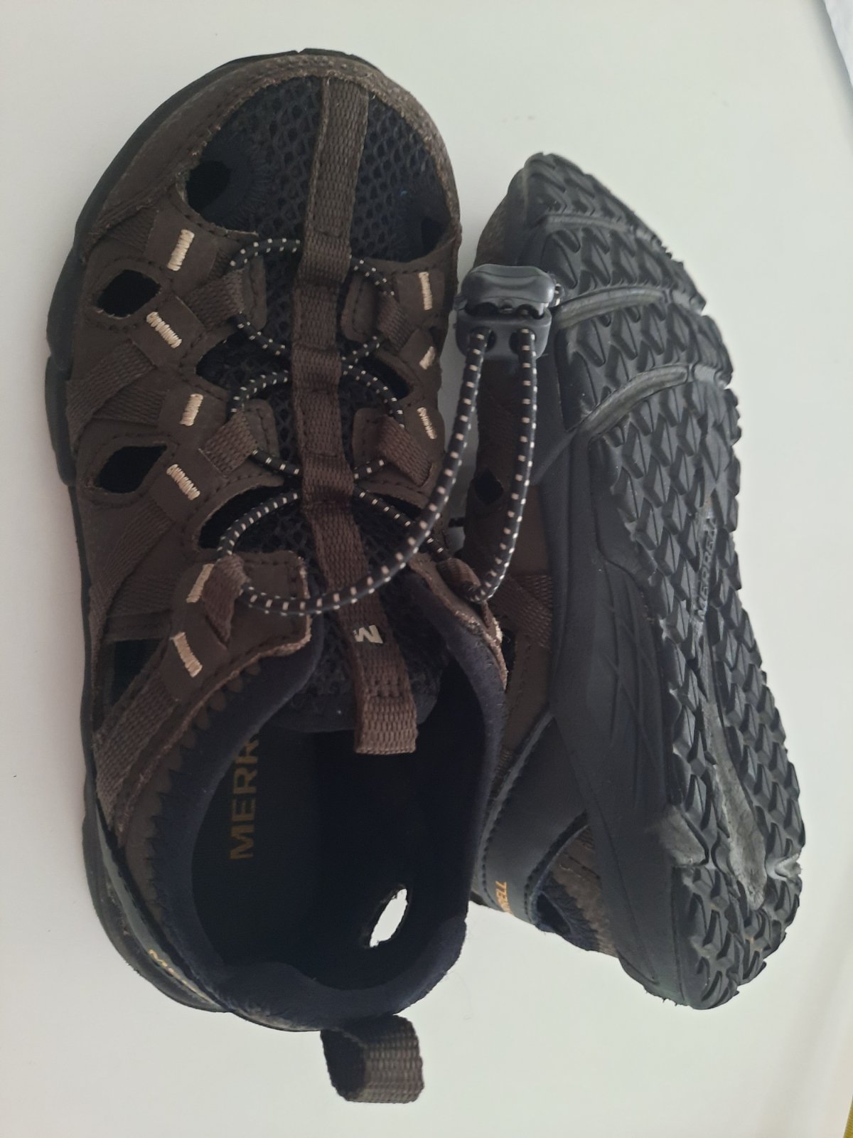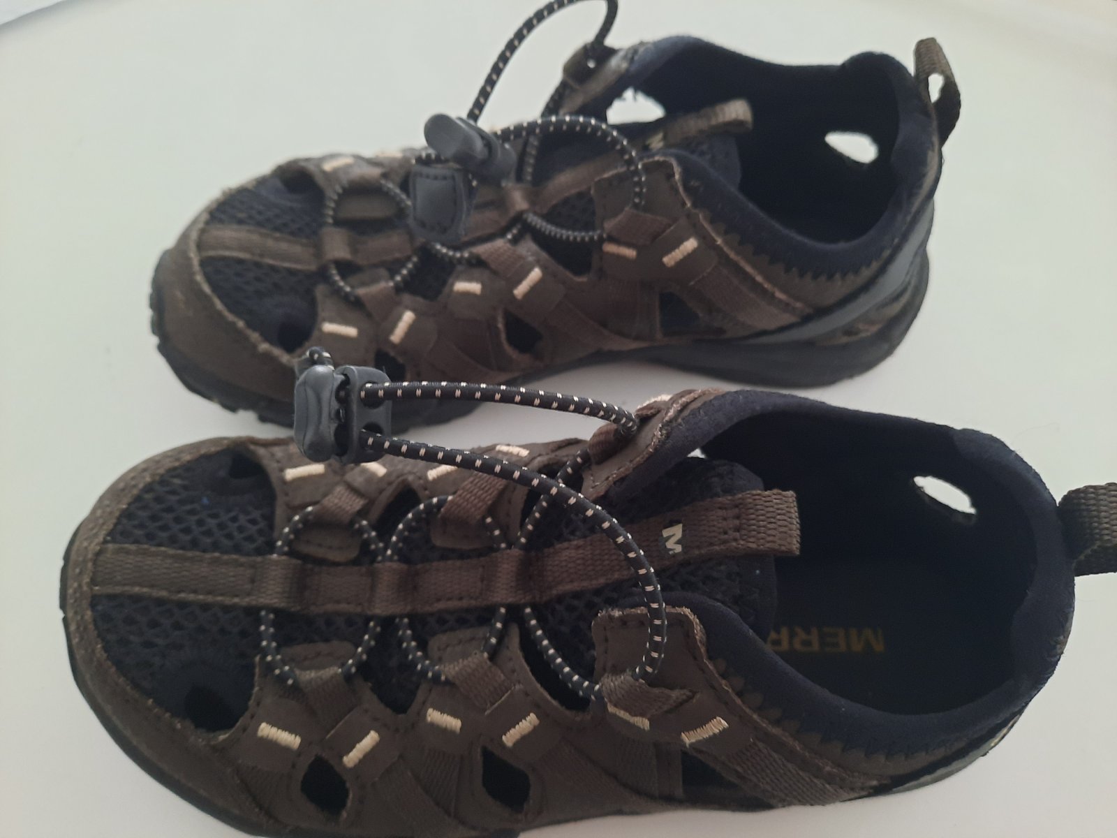 Ponúkam krásne sandále značky Merrel. Veľkosť 31. Sú na užšiu nôžku. Sú skoro nenosené keďže boli môjmu synovi úzke.