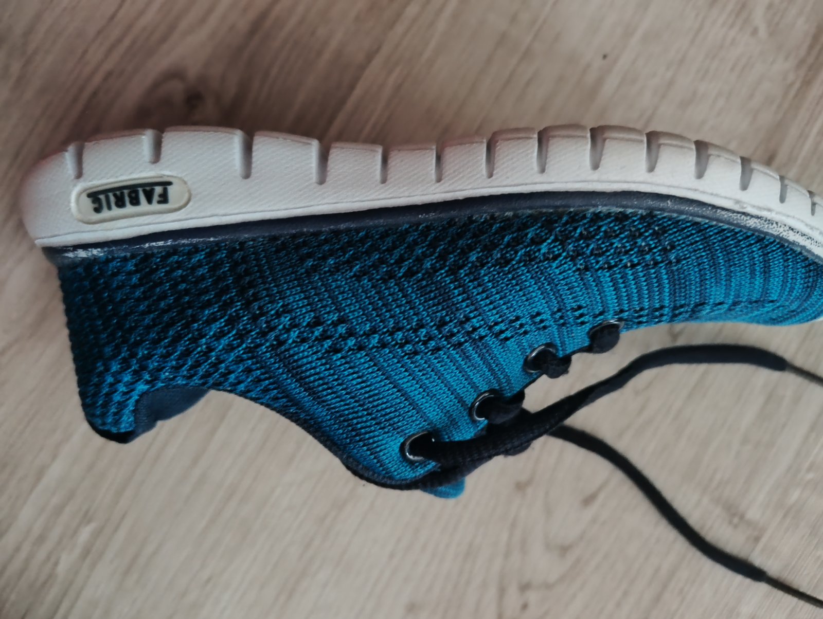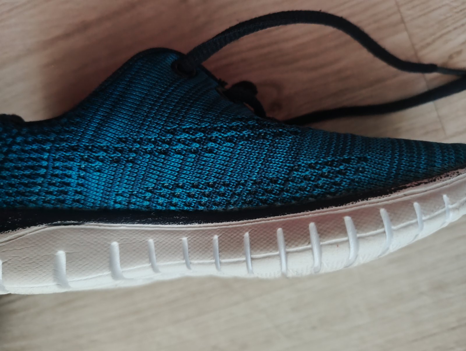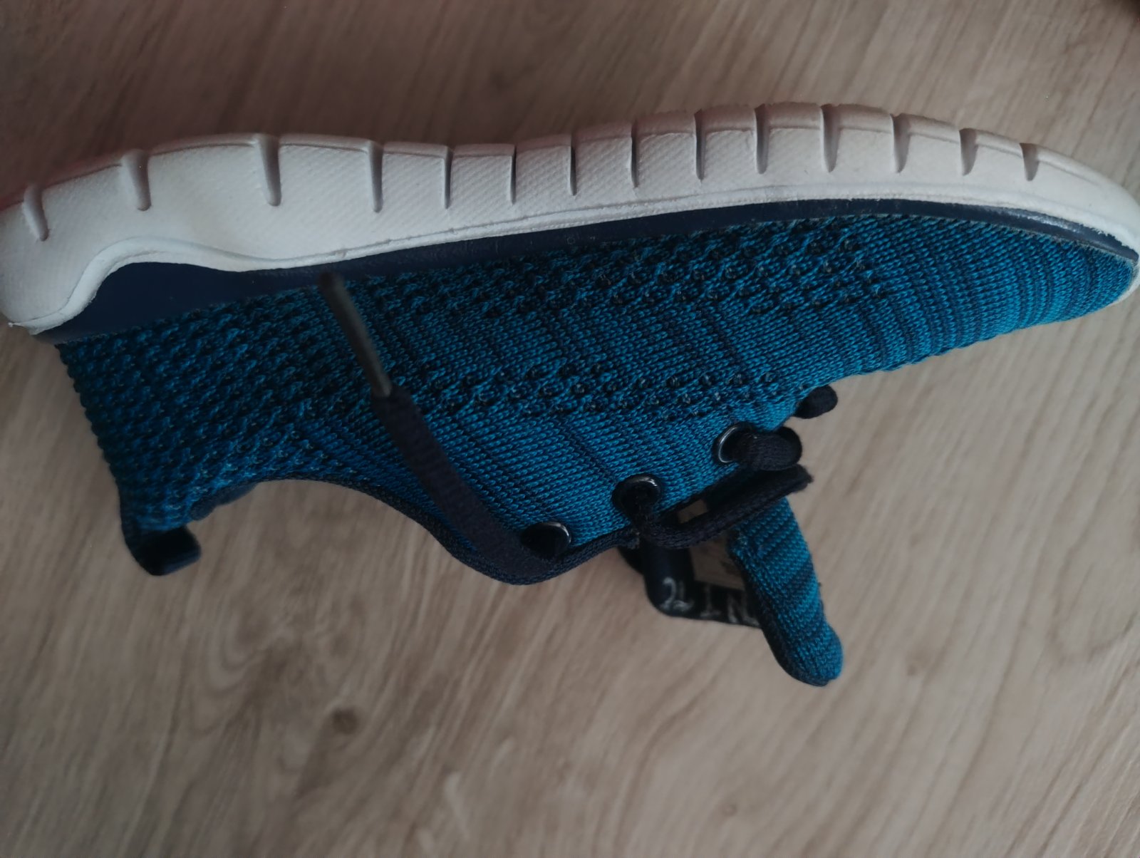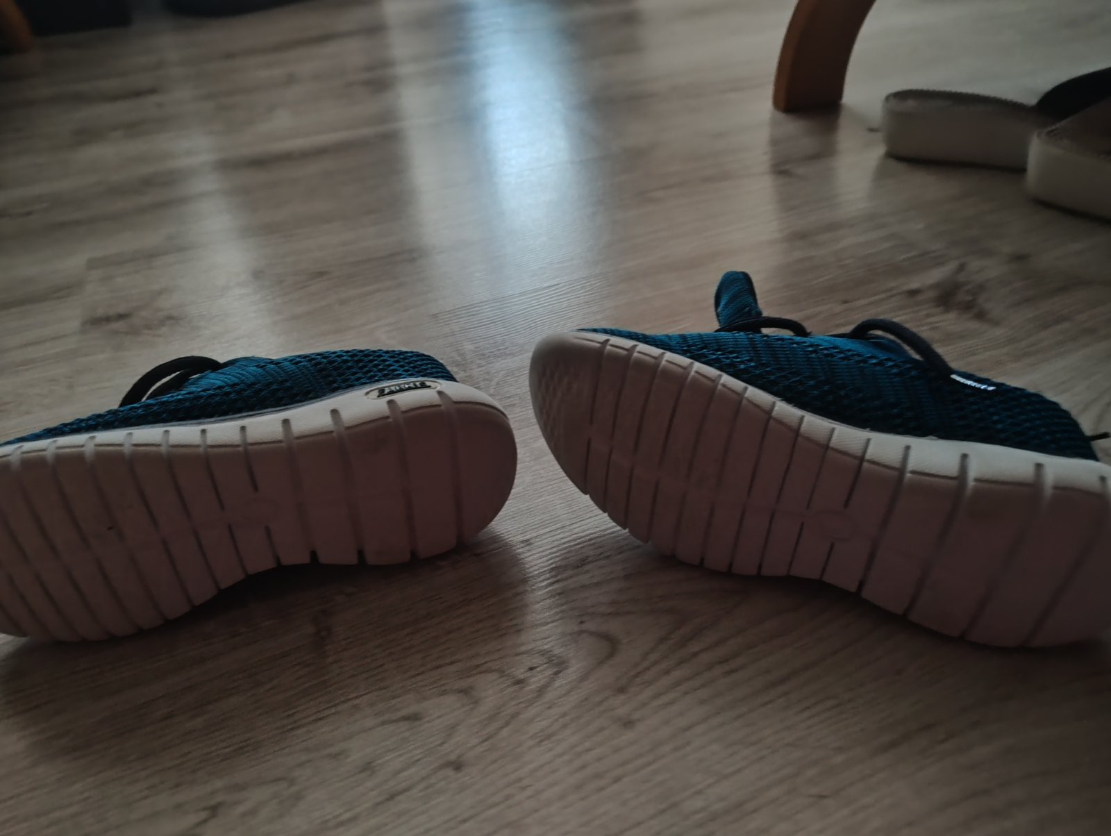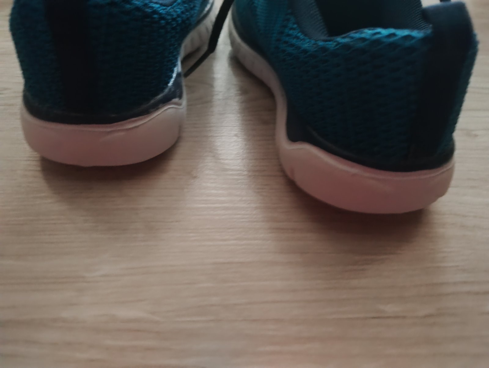 Nemajú žiadne poškodenia,nemajú tvarovanu vnútornú vystelku. Vyzerajú ako nové. Len logo na vnútornej vlozke je trochu zosuchane. Podrážka je biela,vhodné sú aj na telocvik.