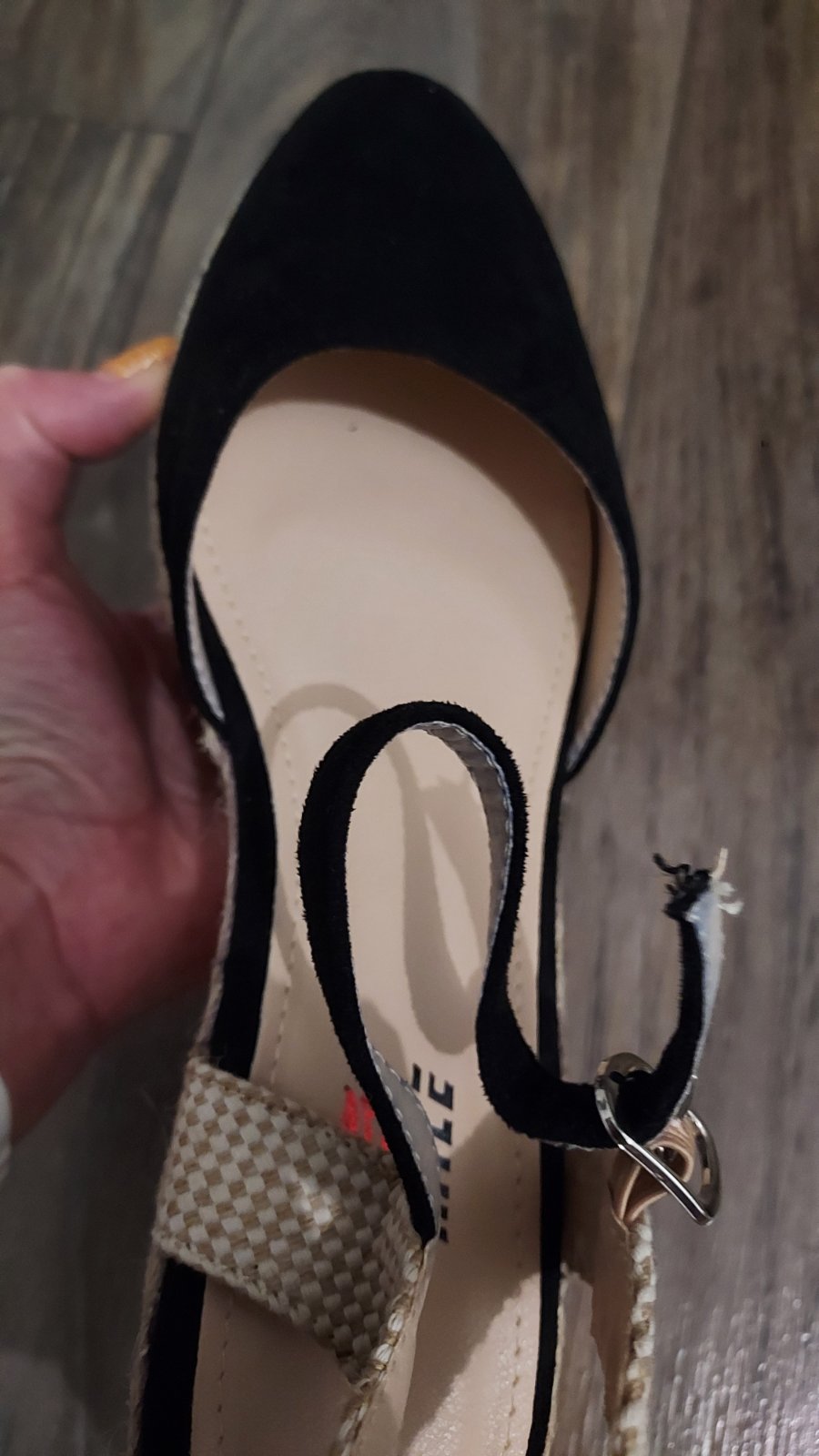Obute 2x, bez poskodeni, len na 1topanke malicky osuch. Platforma 3,5cm. Opatok 12,5cm. Vn.dlzka 25,5cm.