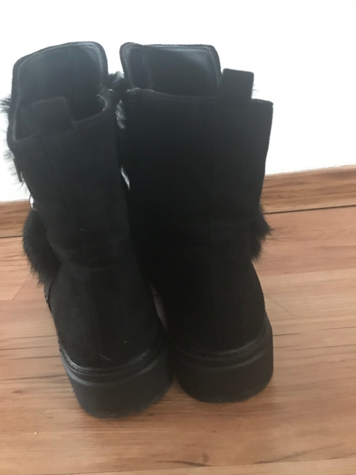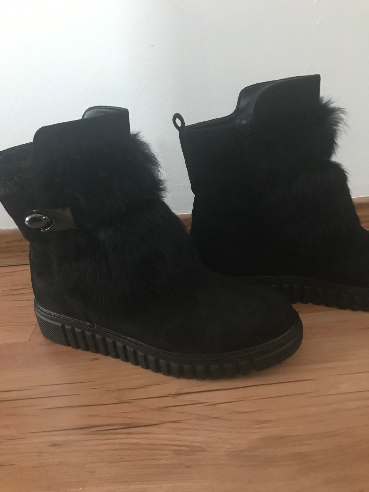 Predám dvakrat dcérou obuté semisove čižmy sytej čiernej farby.Sú v peknom stave,aj keď majú sem-tam nejakú smuhu (fotky).Mierne zateplené.
