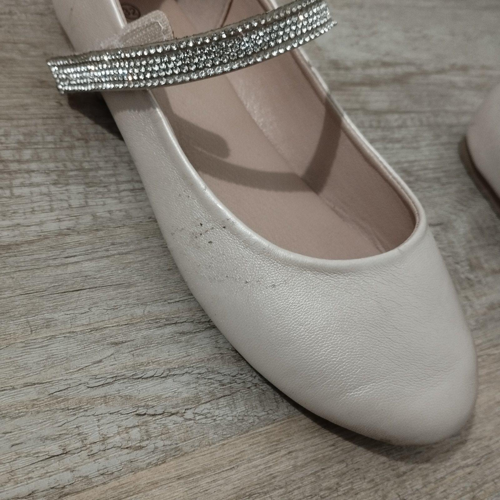 Krásne bledučko ružové mäkké balerínky veľkosť 32 s ozdobným remienkom, vd 20,5cm