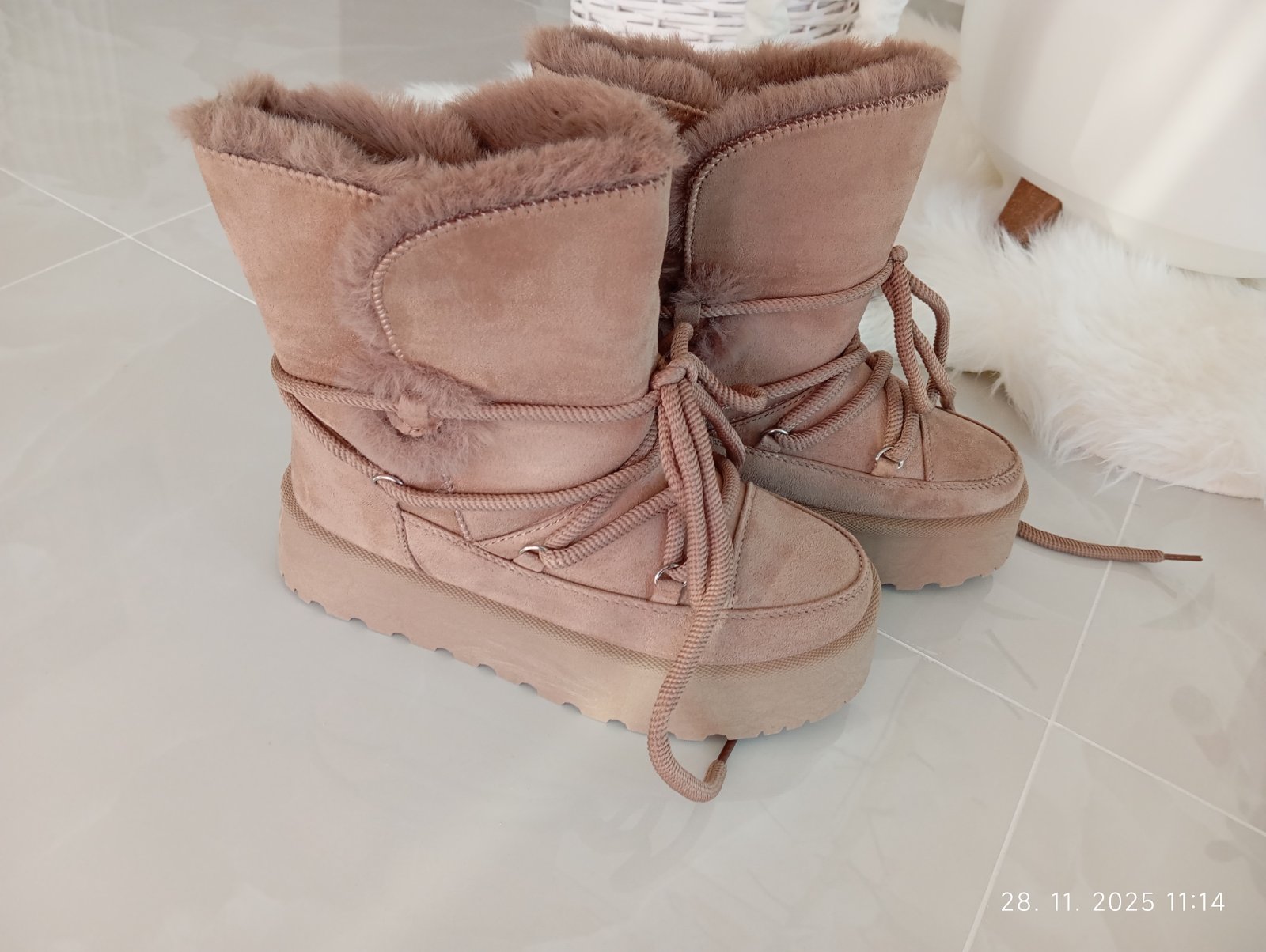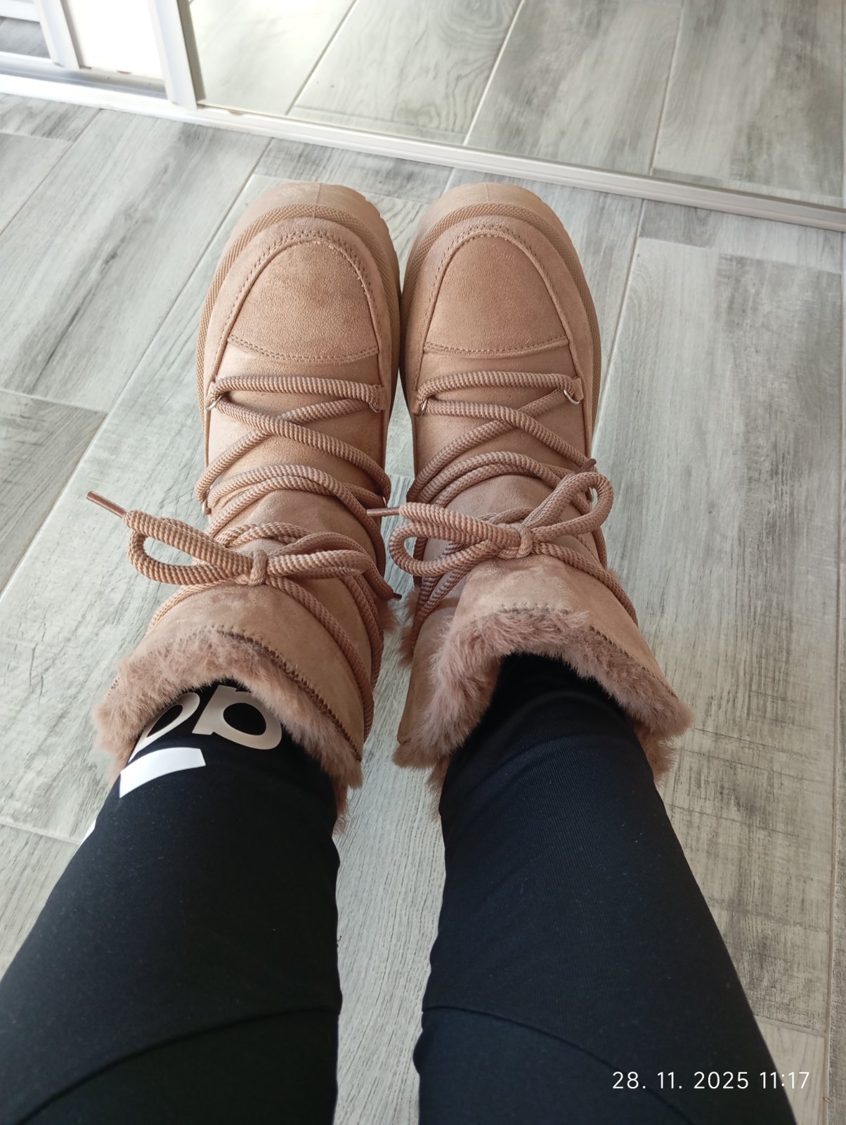 Snehule s hrubšou kožušinkou vo vnútri...boli kupované v decembri a však takmer nenosené .bohužiaľ nevynosim ich stoja v skrini .kupované na Allegro