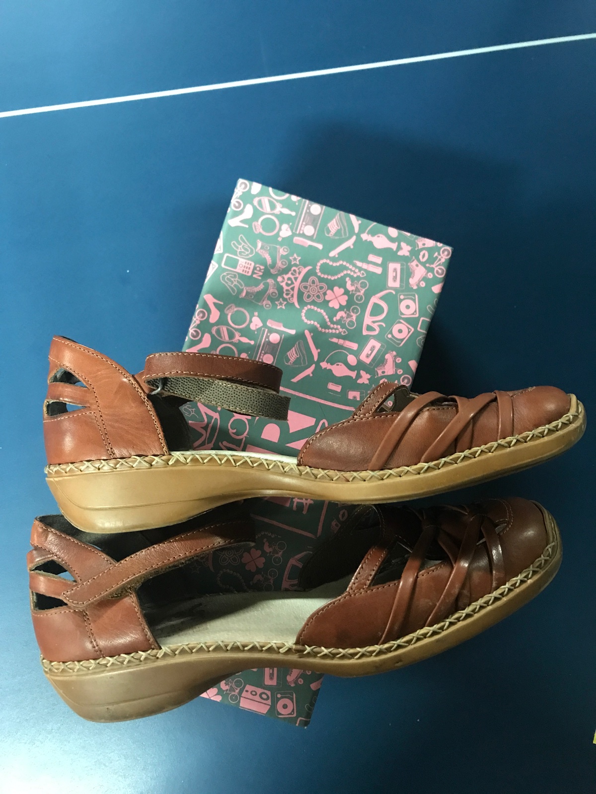 Kozene sandale, perfektne sedia na nohe, pohodlne ako vsetky topanky od Rieker👌Su nosene, ale stale maju krasny vzhlad a posluzia este dlho.
