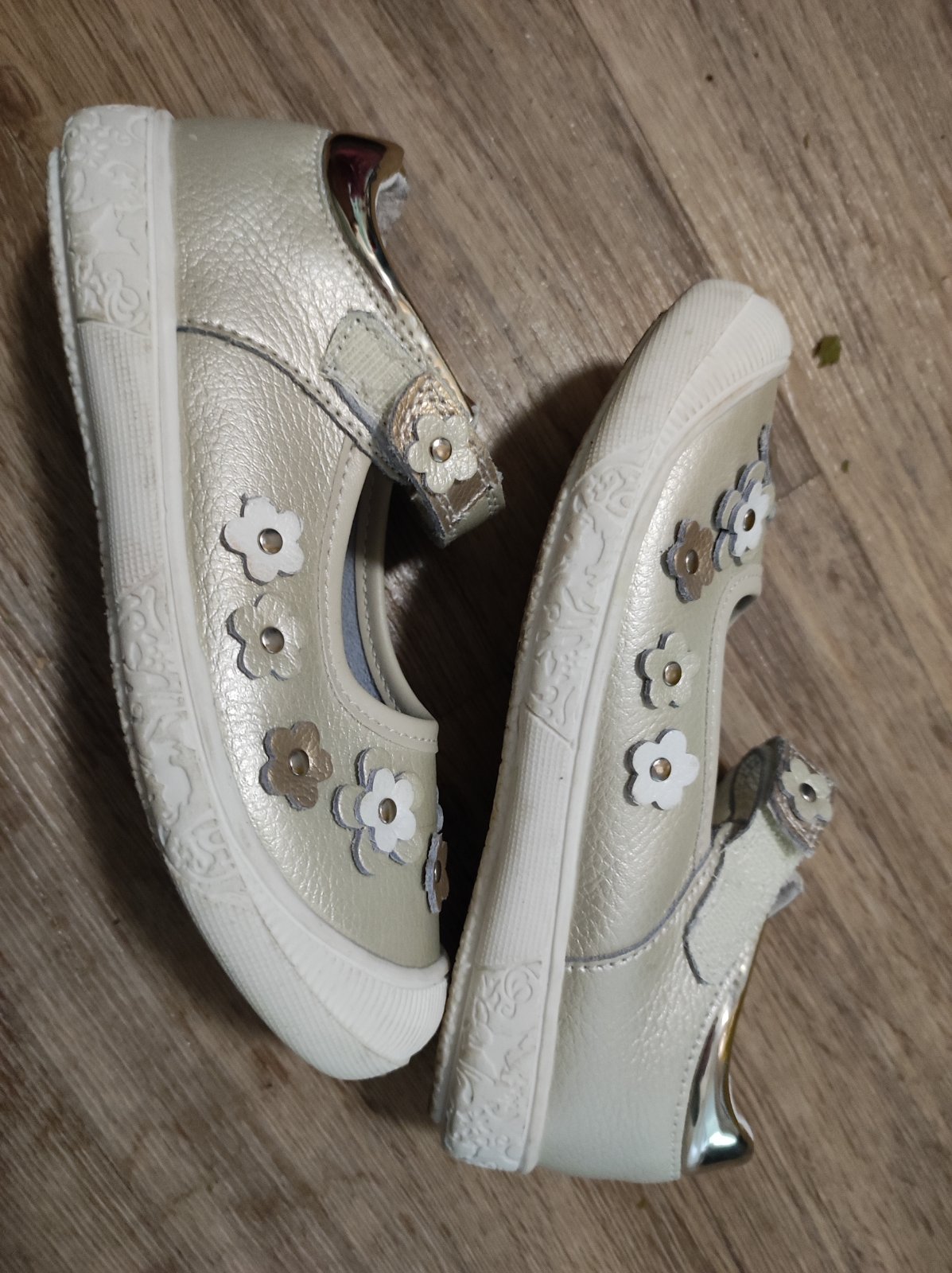 Ponúkam na predaj dievčenské balerínky v zlatej farbe. Boli obuté jedenkrát, sú ľahučké, vhodné na slávnostnú príležitosť alebo vystúpenie. veľkosť: 30 materiál: syntetická koža