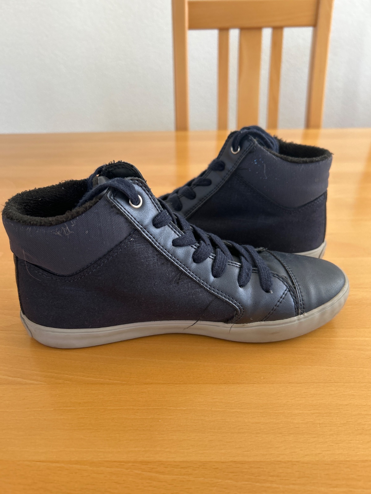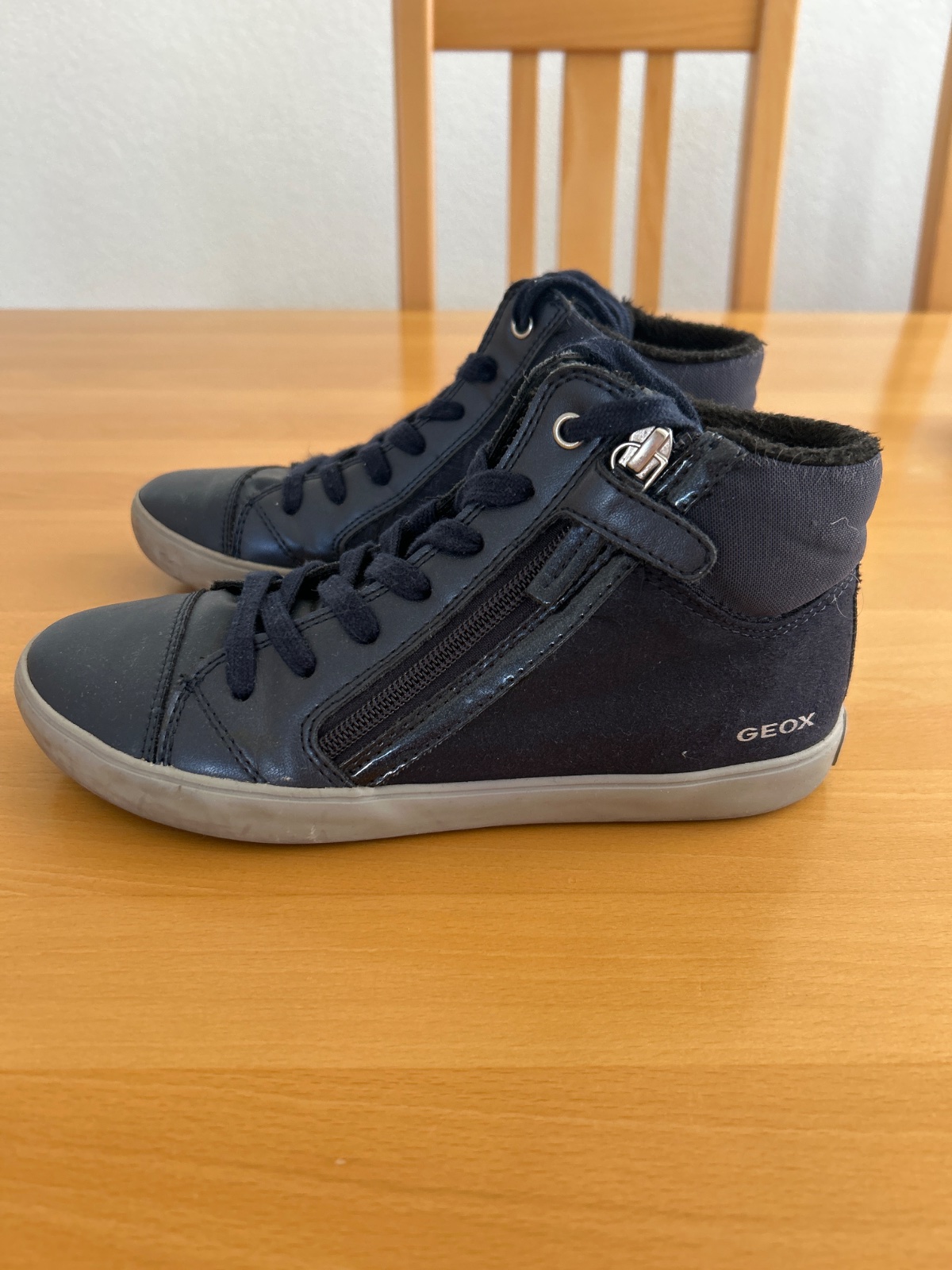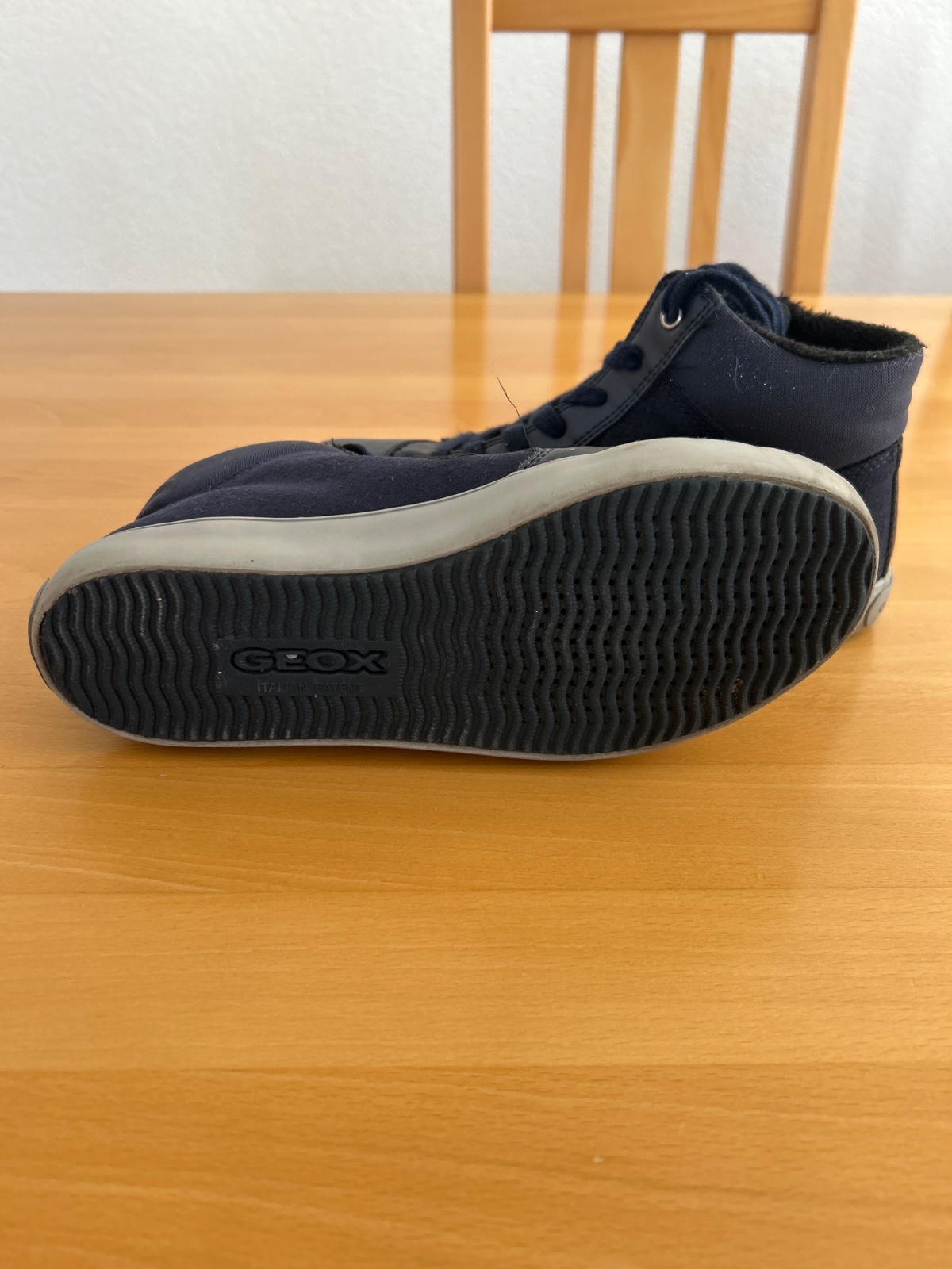 Kvalitné GEOX topánky. Majú známky nosenia (viď. Foto - odretá špička - no nie odlepená, zošúchaná ekokoža na päte pri nápise GEOX, malé vydratie vo vnútri na päte), suché zipsy držia dobre. Po dvo...