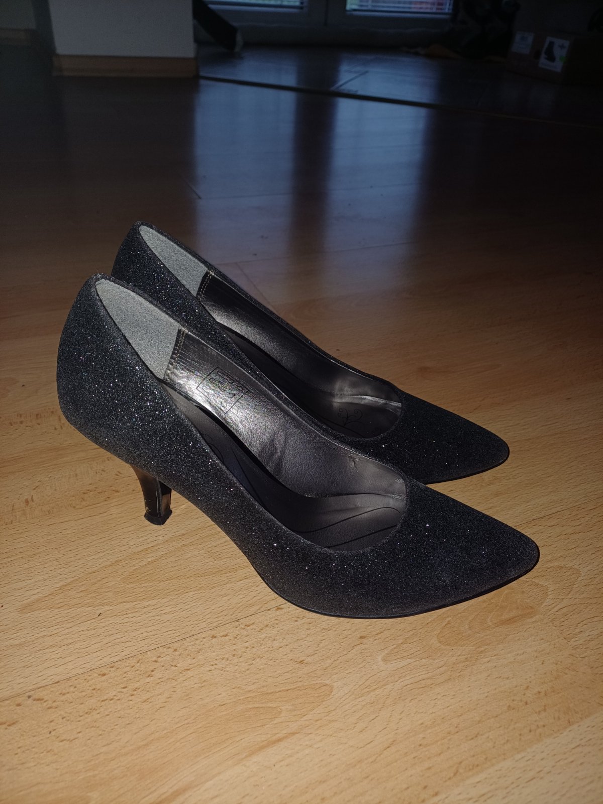Predám 3x pouzite plesové lodičky čiernej farby s trblietkami.