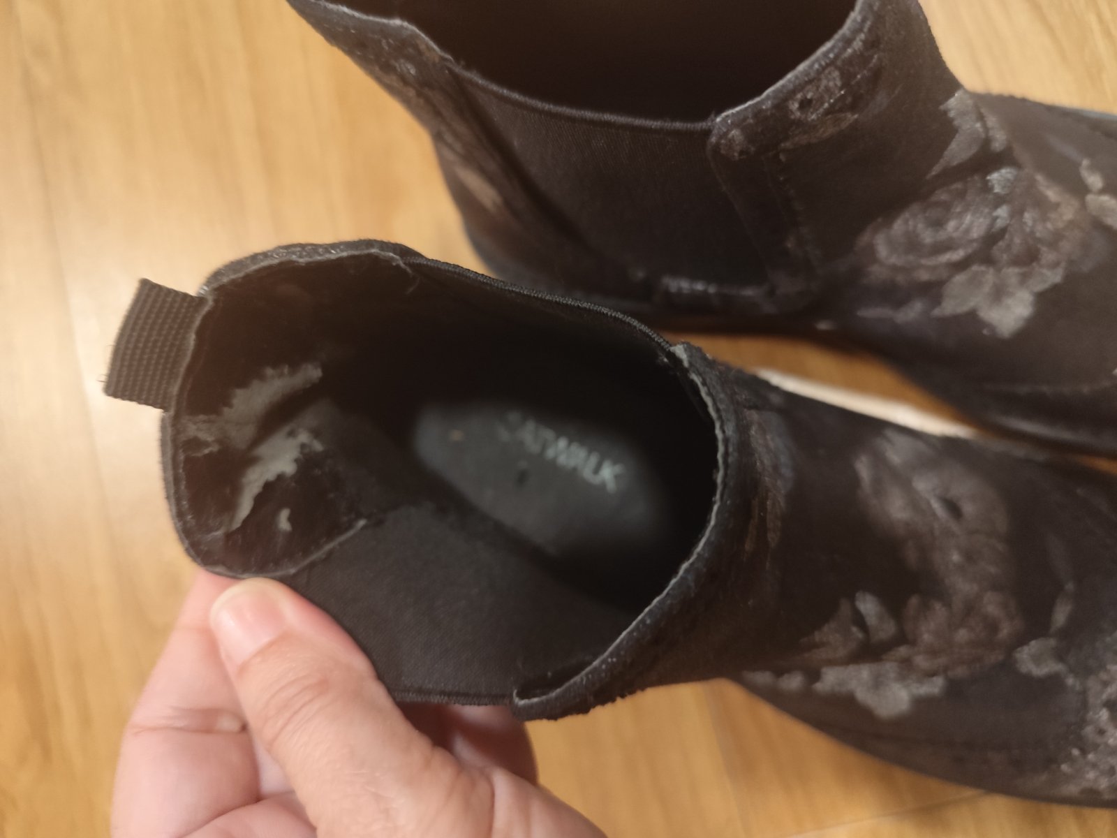 Predam pekne cizmicky. Su velmi pekne, len na jednej zvnutra sa mi troska na päte začalo odlupovat. Je to zvnutra, nie je to vidiet, zvonka su neposkodene. Preto ich predavam skor na donosenie.