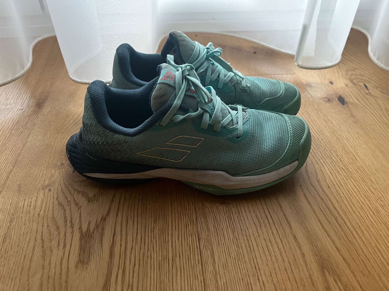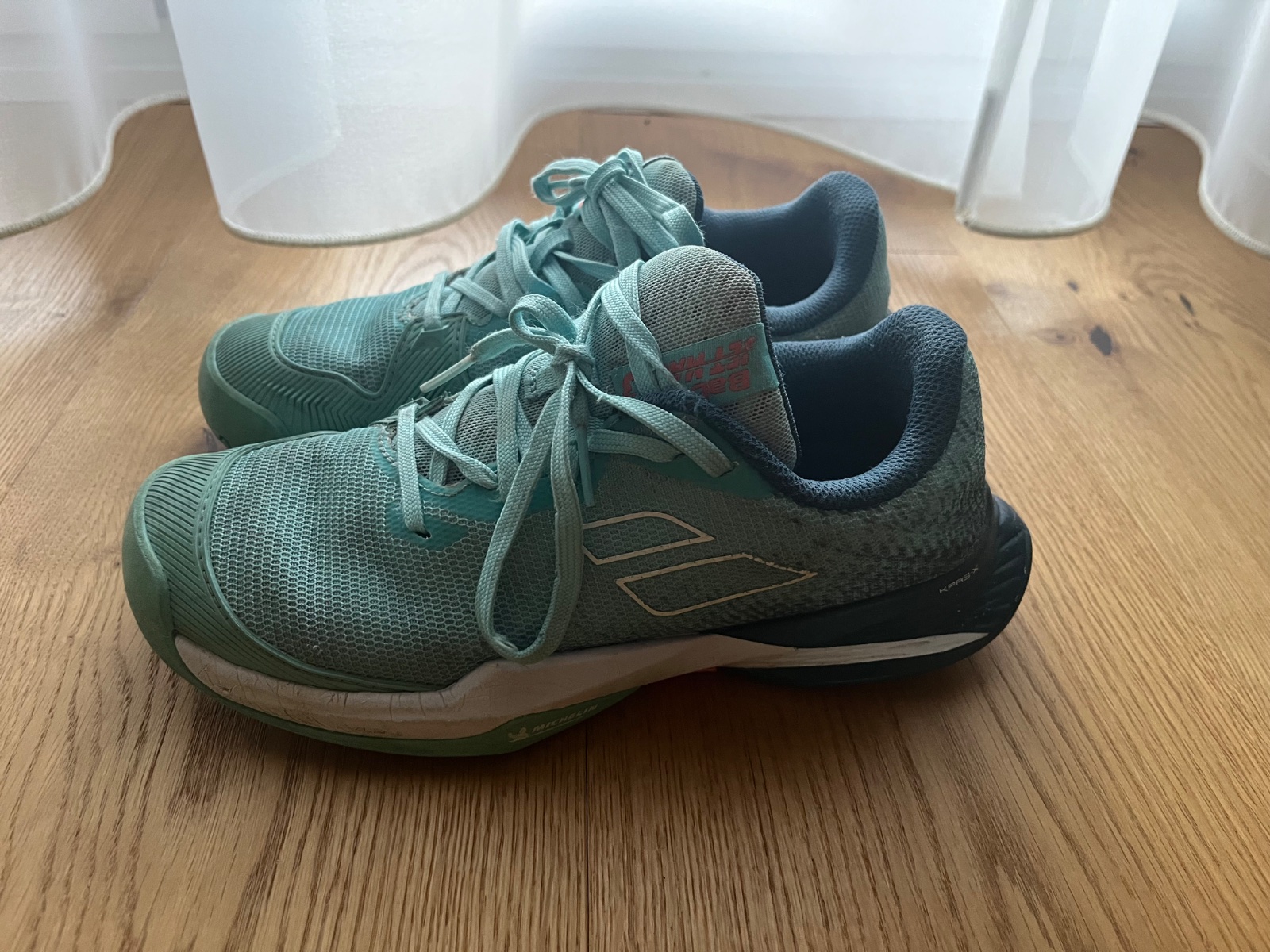 Tenisky na tenis na rôzne povrchy, kvalitná podrážka Michelin, nosene jednu sezónu, špička cela pogumovaná, vhodna aj na kolobezku 😉 PC cez 50 eur.