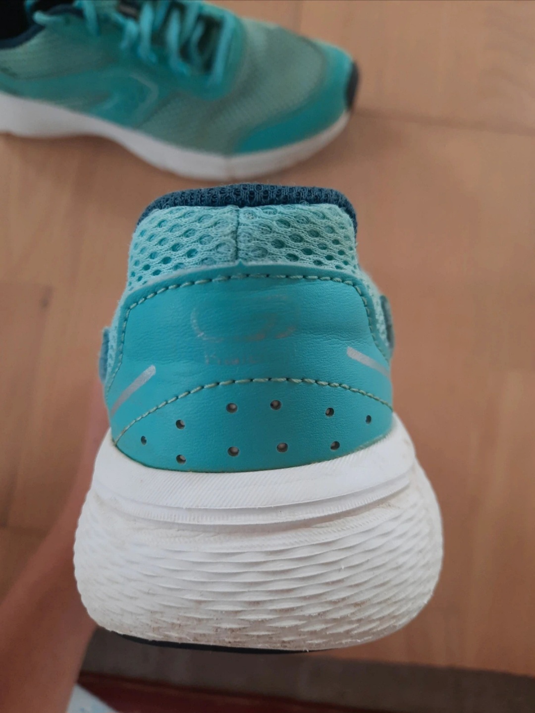 Tenisky obute asi 2x, dcere vyrastla noha, ale aj tak sa jej ich podarilo suchnut( vid foto detail, ale pri noseni skoro nevidno) a az fotka mi ukazala flak- takze beznym okom som si to ani nevsiml...