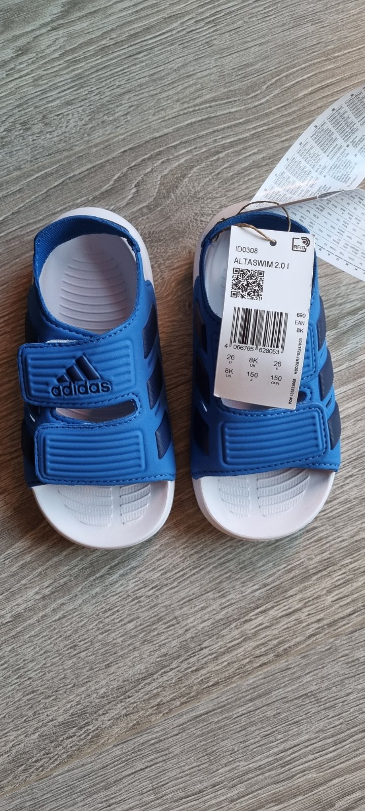 Predám sandálky zn. Adidas Bez poškodení v super stave, ako nové. Párkrát obuté na kúpalisku a 4krát na dovolenke aj to len v hoteli ako prezúvky. Zapínanie na suchý zips. Suché zipsy držia dobre. ...