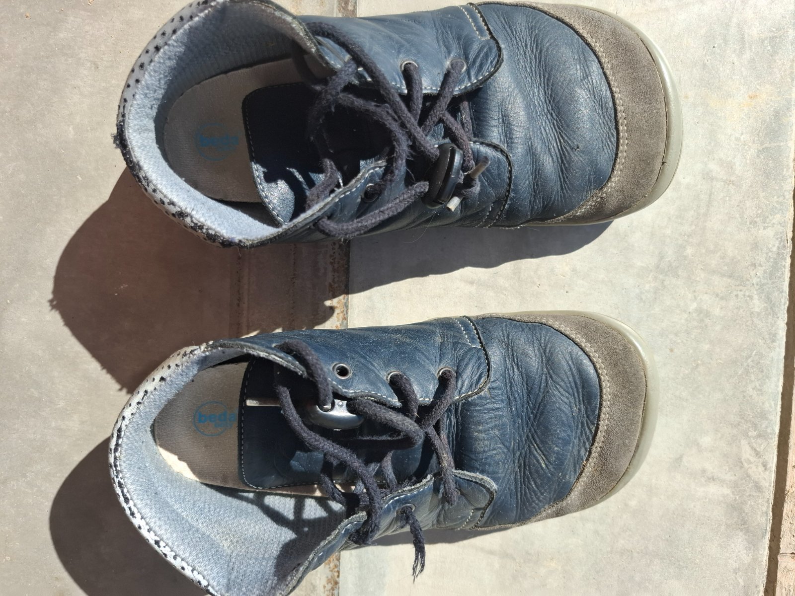 Topánky sú v dobrom stave.Majú známky používania, viď.foto.Látka na pätách na vonkajšej strane je miestami ošúchaná,čo však nenarúša funkčnosť topánky. Vo vnútri sú nepoškodené. Na jednej topánke je potrebné vymeniť odtrhnutú šnúrku.Topánky posuniem aj s brzdičkami.