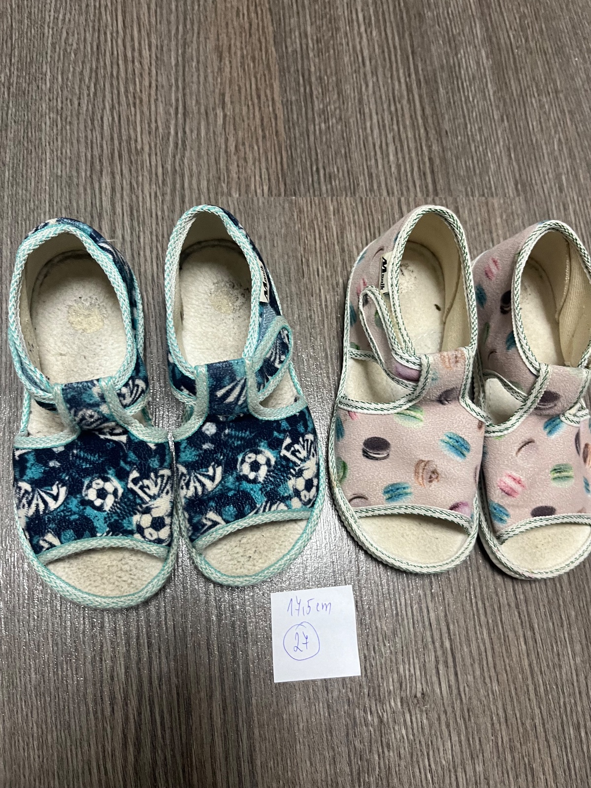 Papučky značky Manik vo veľkosti 27, jedny nosené v školke a druhé na doma.V dobrom nosenom stave. Cena 6€ za kus.