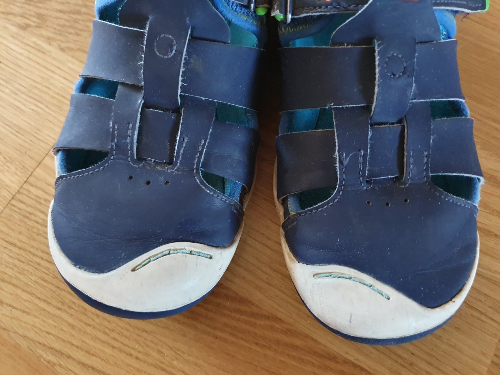 Nosené kožené sandále Plae v dobrom stave, sym ich nosil rok ako prezuvky do školy, potom bez vložiek ako sandále. Pekný nosené stav