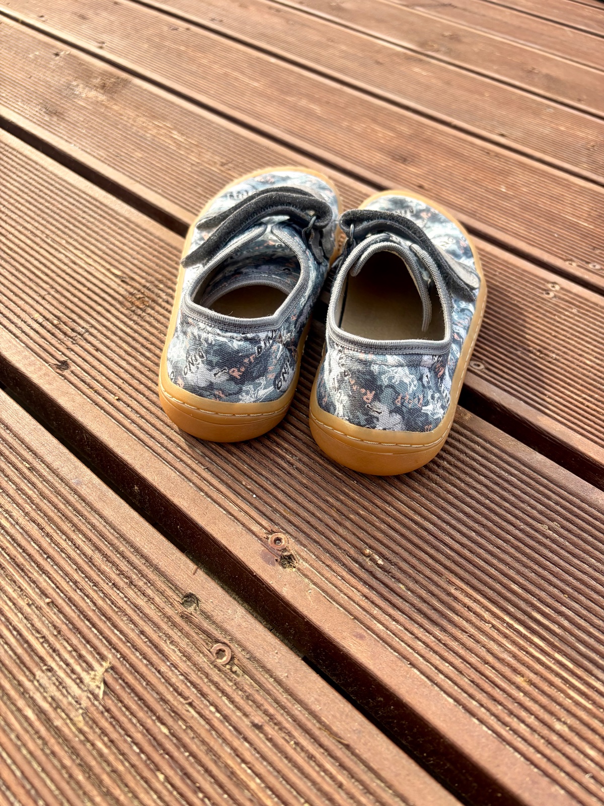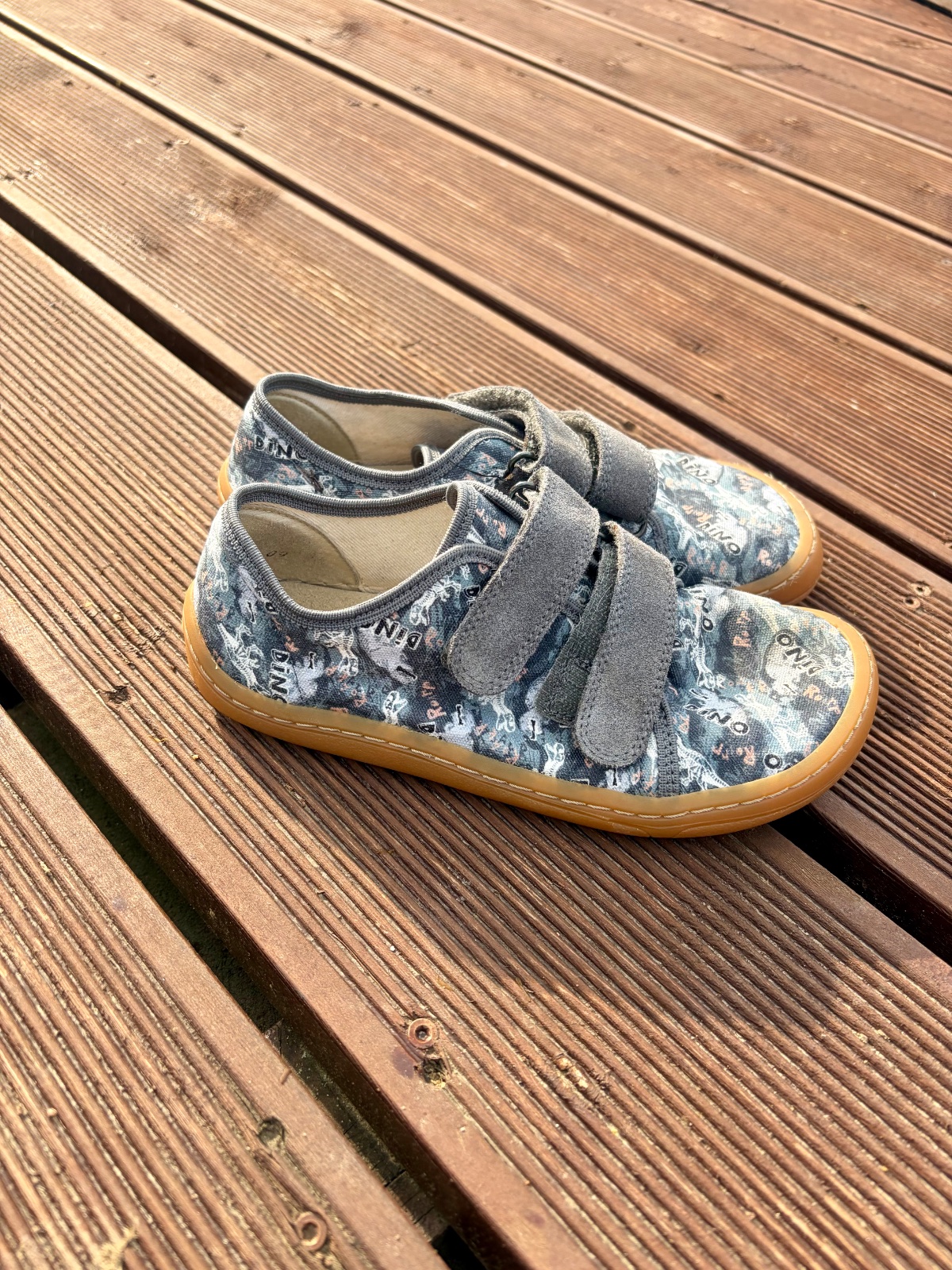 Nízke barefoot topánky vyrobené v kombinácii kože a textilu. Vnútro je kožené. Veľkosť 23, 24, 26, 27 - cena 69,90 € Veľkosť 31, 32 - cena 73,90 € Vnútorný rozmer: 23: 14,9 x 6,2 cm 24: 15,5...
