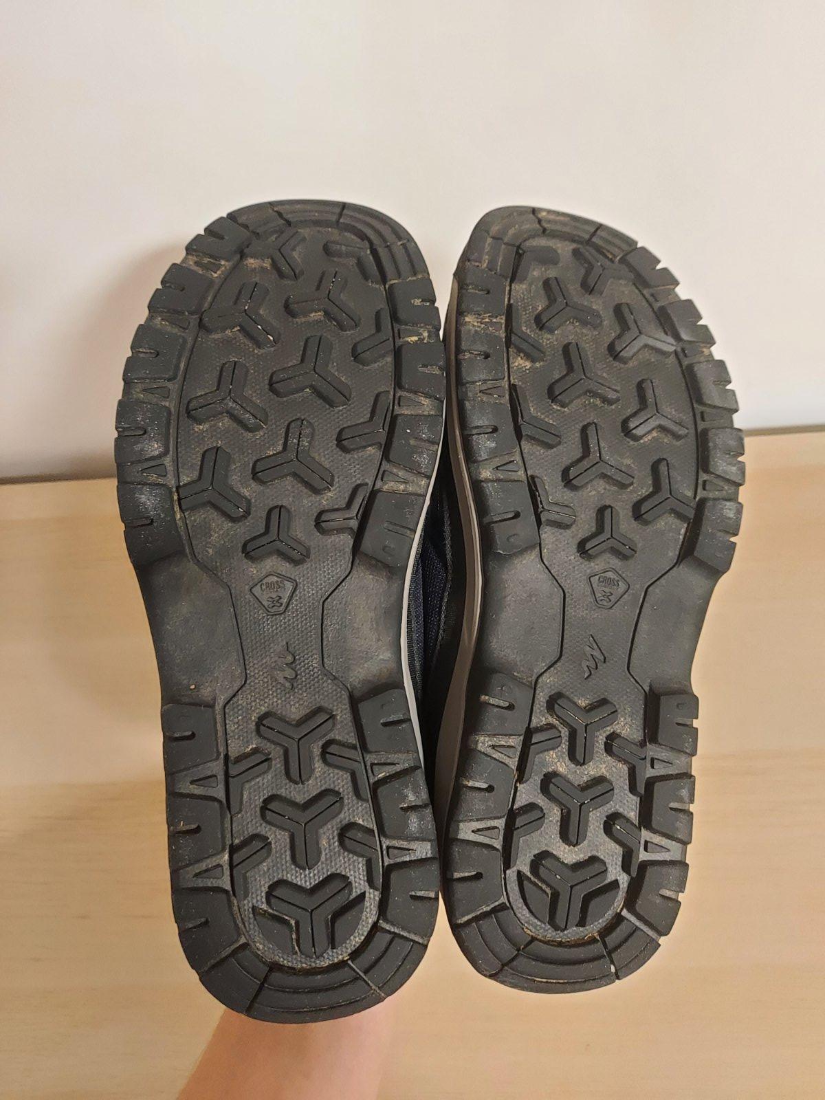 Turisticke topanky zn. Quechua, obute asi 5x. Vyborny stav. Pohodlne, sirsi strih. Po naimpregnovani nepremokli. Velkost uvedena 40, trocha vacsie, sedia na 40-41.