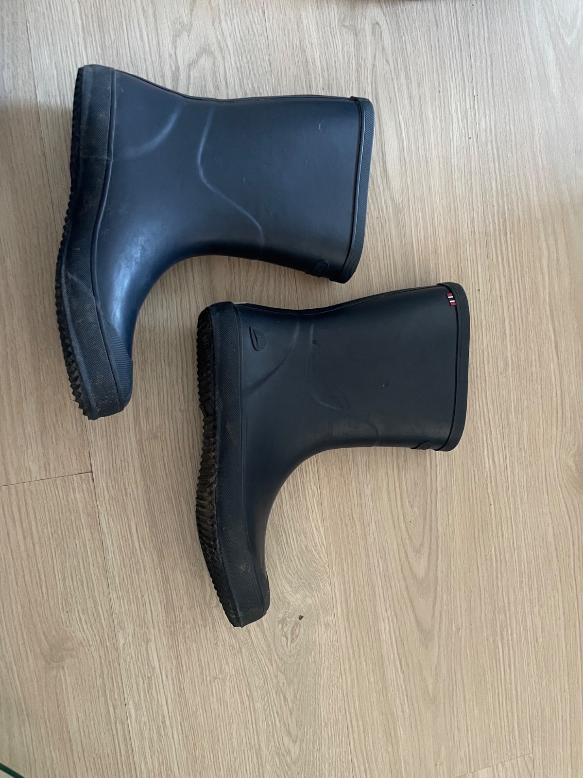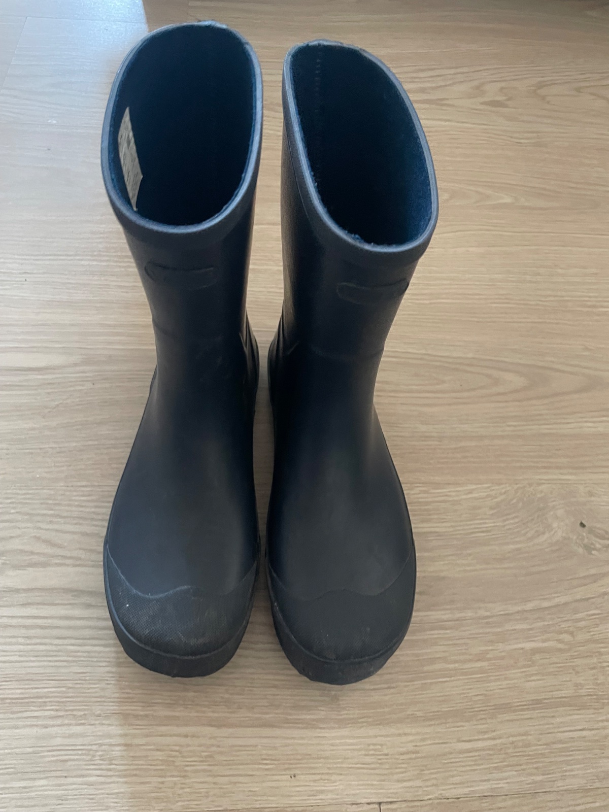 Nenosené gumáky Tesco F&F. Sú tmavomodrej farby s trbliekami - neopadávajú, sú zapracované v gumákoch. Sú zateplené - vnútorná plyčová teplá výplň sa dá vytiahnuť a v rukách oprať.