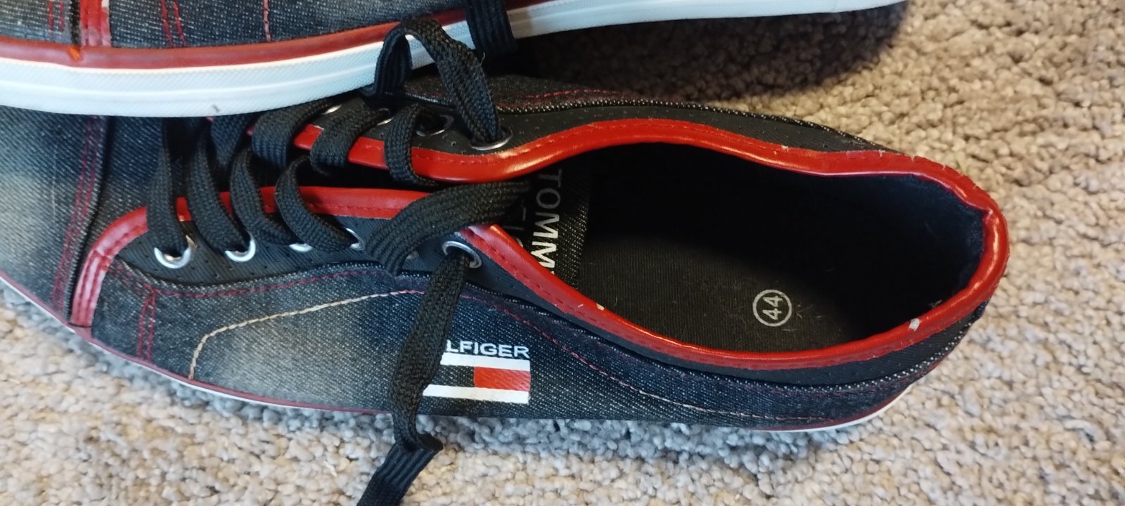 Originál Tommy Hilfiger, veľkosť 44, sú ako nové, syn ich mal len raz obuté,kupované v Nemecku Vnútorná dĺžka je 28cm