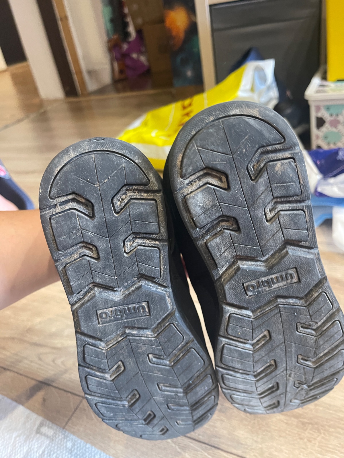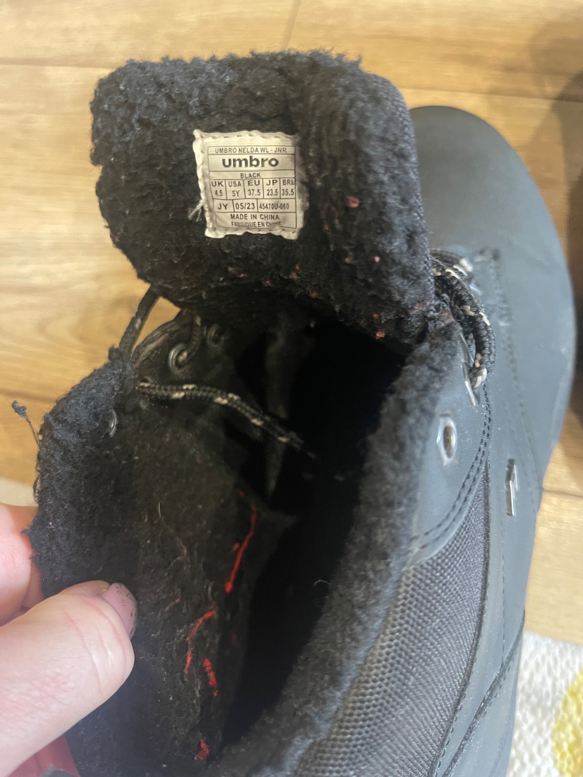 Nosena po dedine po dvore na jeden a v zime, su umyte tak narychlo, treba ich este otriet,na foto vidno stav. Su zatepnene a vnutro ostali zmolky z ponoziek :) nemam kedy to dat prec. Vnutorna dlzka 23,5cm .