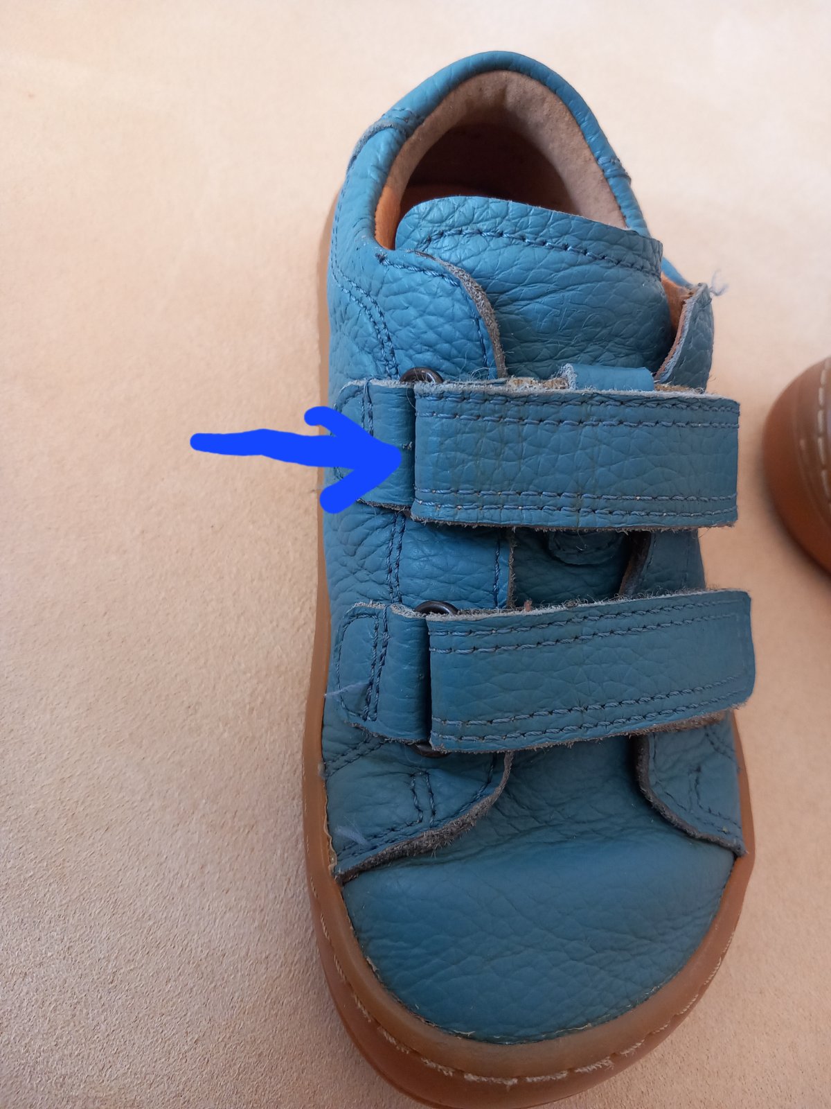 Na podrážke je tmavší fľak, ktorý nejde vyčistiť (viď foto), ale neprekáža. Na zapínacích miestach sa začala odierať koža (viď foto s miestami označenými šípkami) - všimla som si to, až keď som čistila topánky a mala ich blízko, inak to nevidno.
