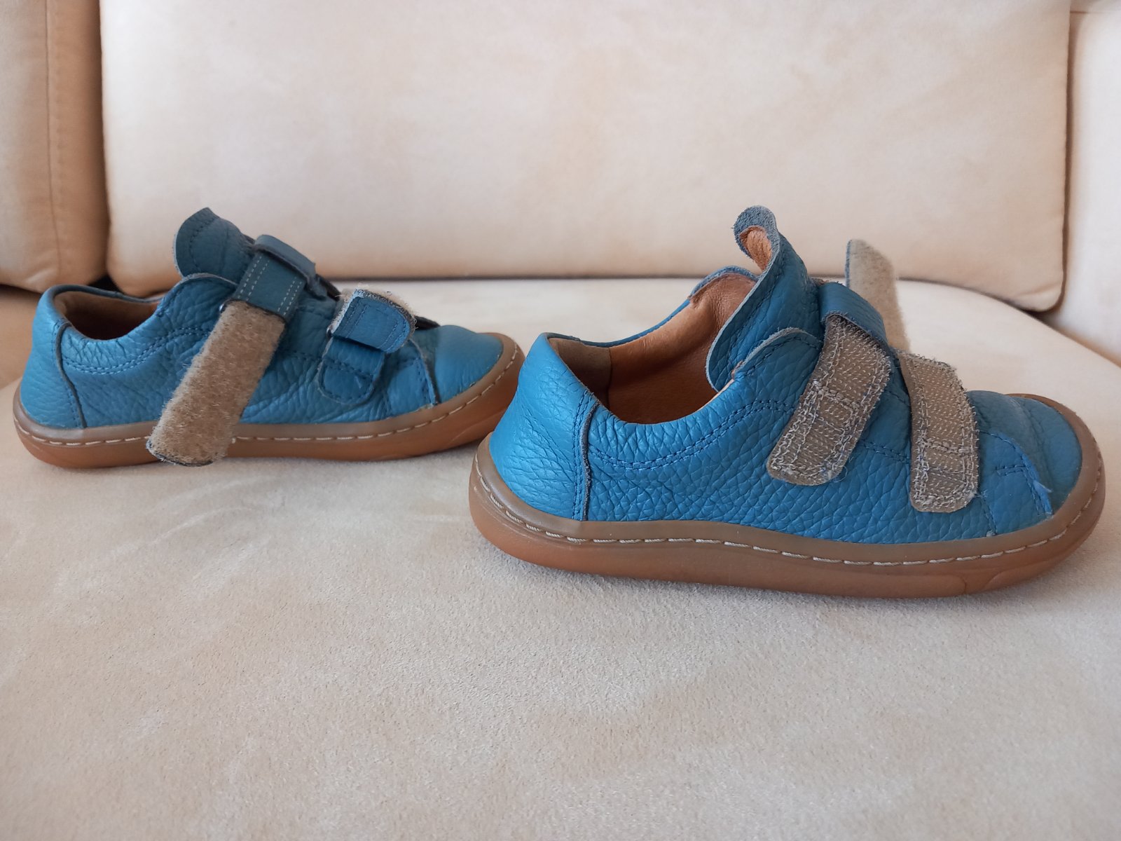 Chlapčenské barefoot topánky, celokožené, veľkosť 26 (vnútorná dĺžka 16,8cm, vnútorná šírka 6,9cm). Vhodné aj na nohu tvaru plutvička a dominantnejší palec.