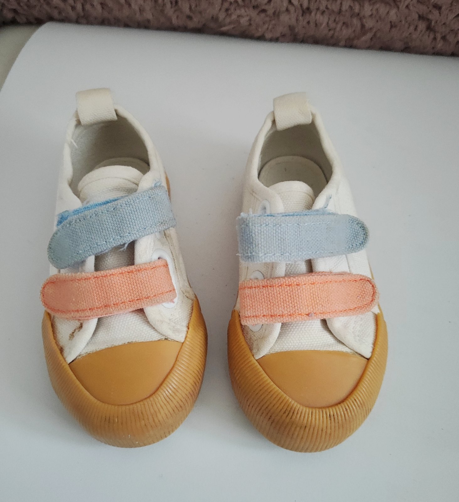 Tenisky úplne nové, iba vyskúšané. Nestihli sme vynosiť. Veľkosť 22/23, mnou nameraná vnútorná dĺžka 14,5 cm.
