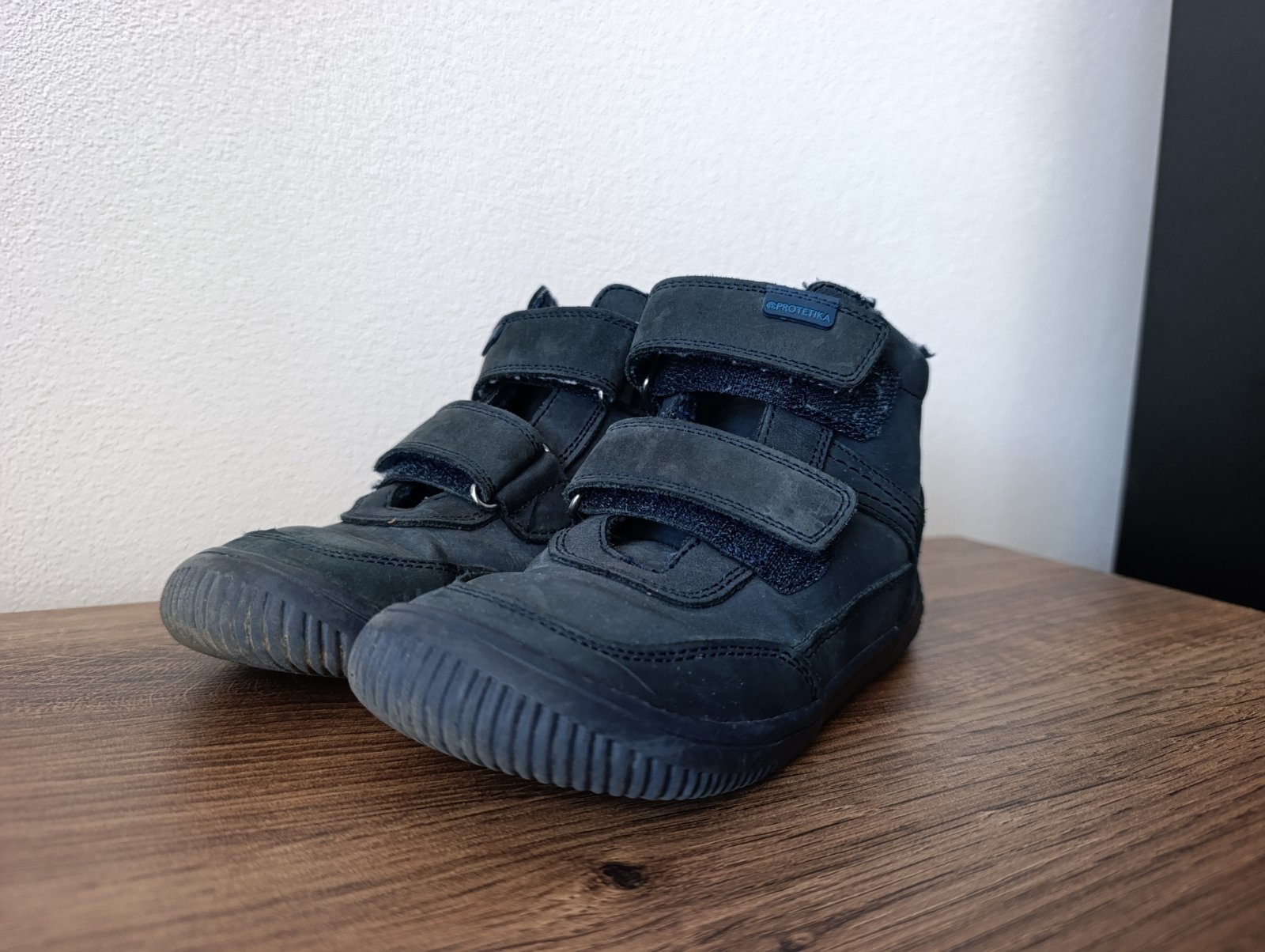 Čierne zimné barefoot topánky značky Protetika. Nepremokli a nie sú ani schodené, suché zipsy držia dobre.
