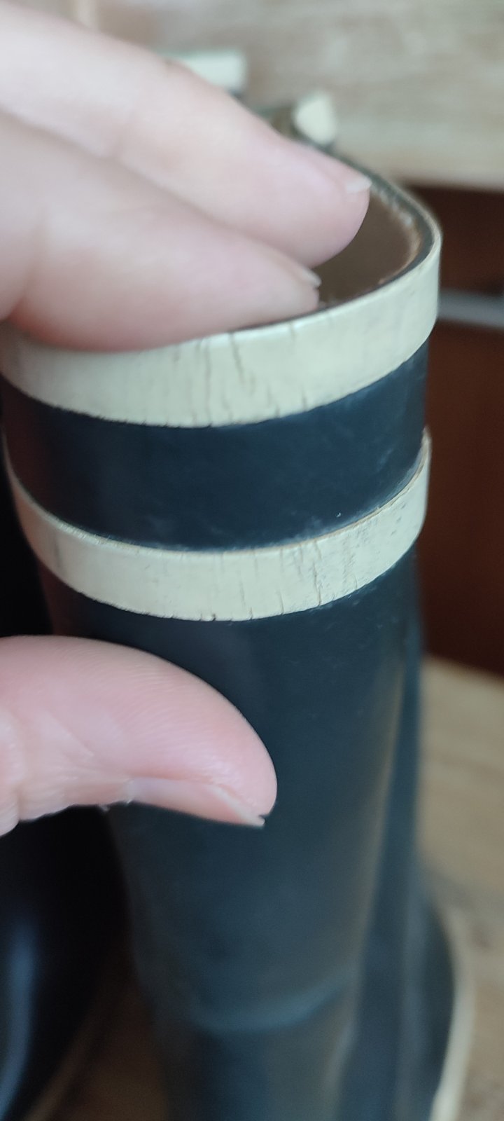 Nosene, vrchny lem popraskany, vid foto, nema vplyv na funkcnost.