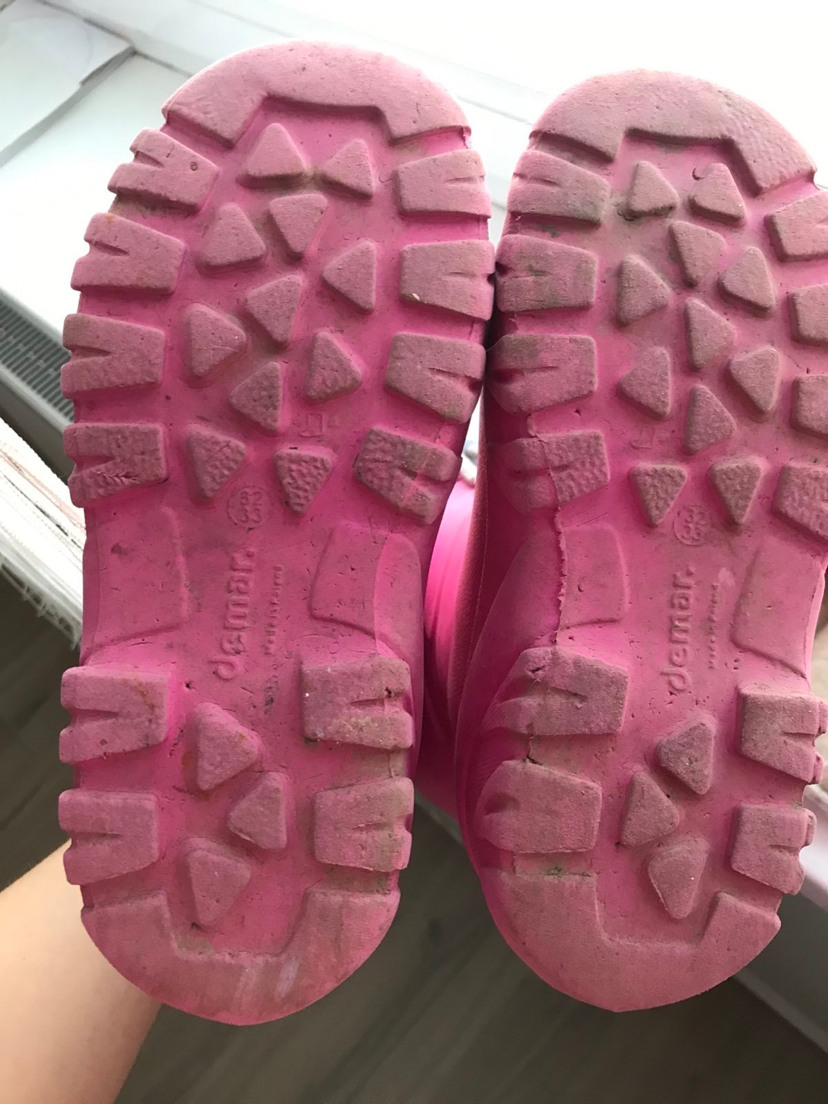 Predám používané gumáky/snehule vo veľkosti 32/33. Nepremokaju, ale vnútorná hrejiva vložka je už na päte a boku miestami zodrata. Cena prispôsobená stavu.