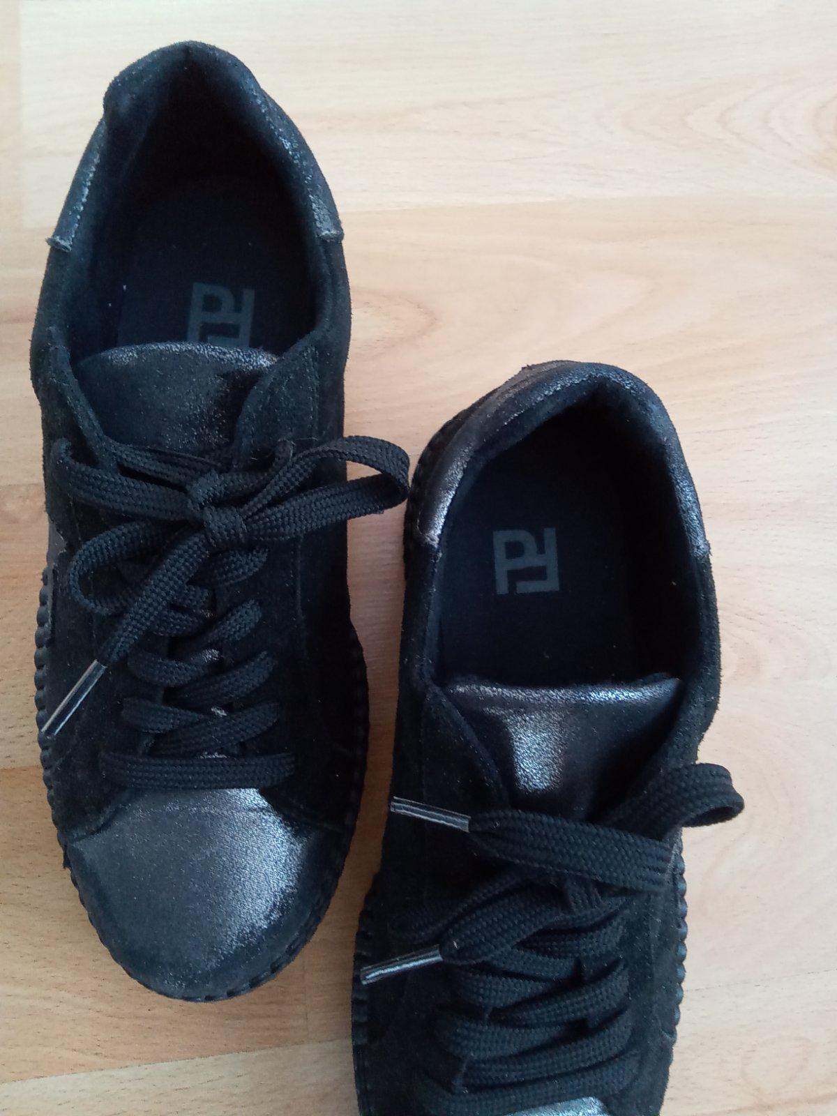 Značkové tenisky PF, brúsená koža,cierno-strieborné-nie sú ošúchané -to je taký dizajn,top stav...sú nám veľké ☹️