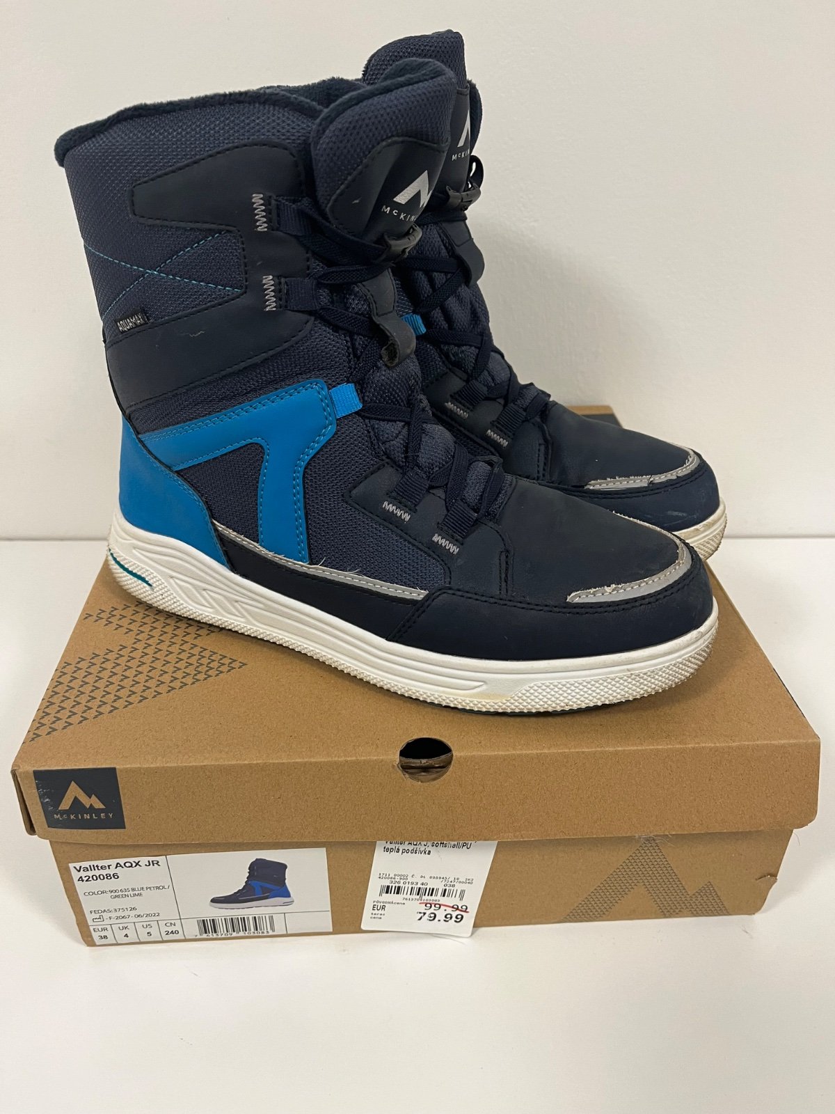 Prepám minimálne nosené detské/juniorské zimné čižmy značky McKINLEY s osvedčenou technológiou do snehu a mrazu. Sú v nádhernej farbe, ktorá sa hodí pre dievčatá aj chlapcov.