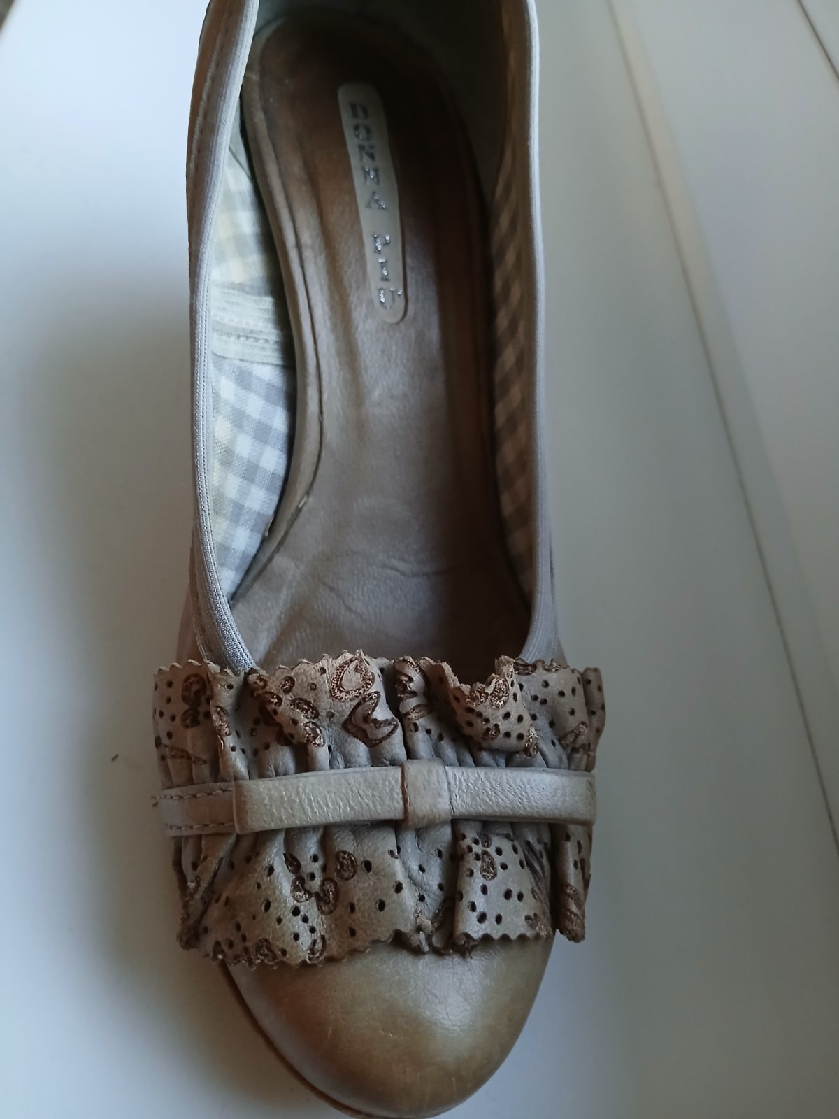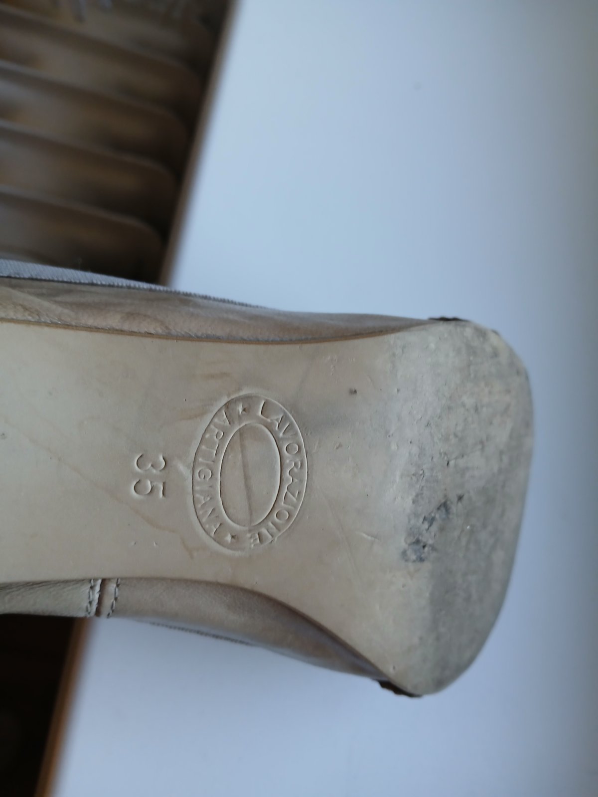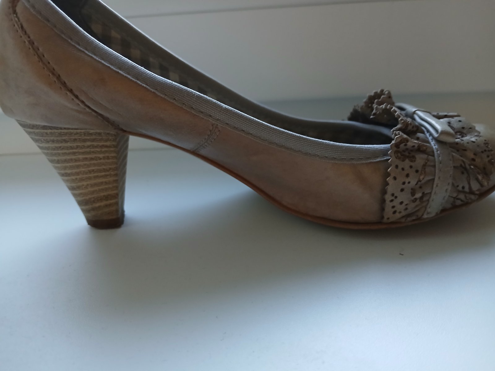 Ponúkam béžové lodičky, vel.35 ,obuté 2x. Vnútorná dĺžka cca 21 cm, veľkosť opätka 8 cm. Cena s poštovným 13 eur.