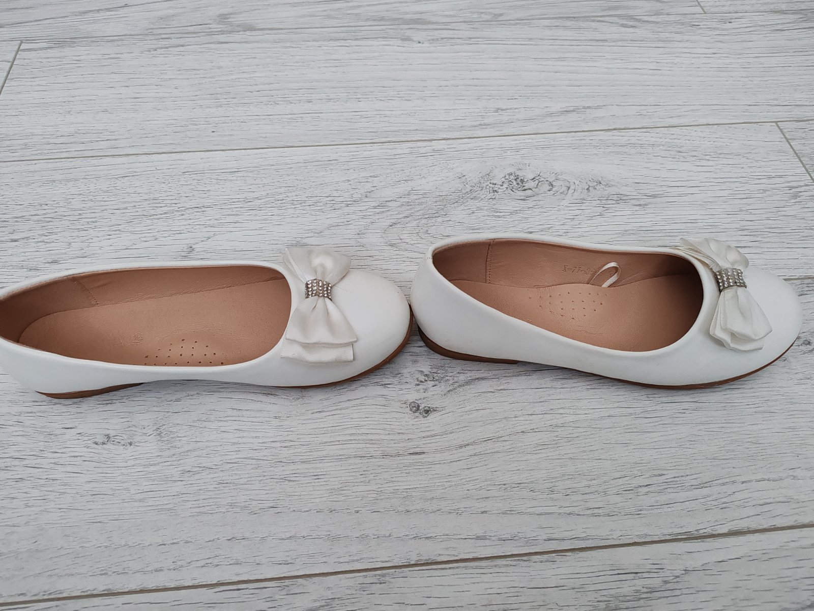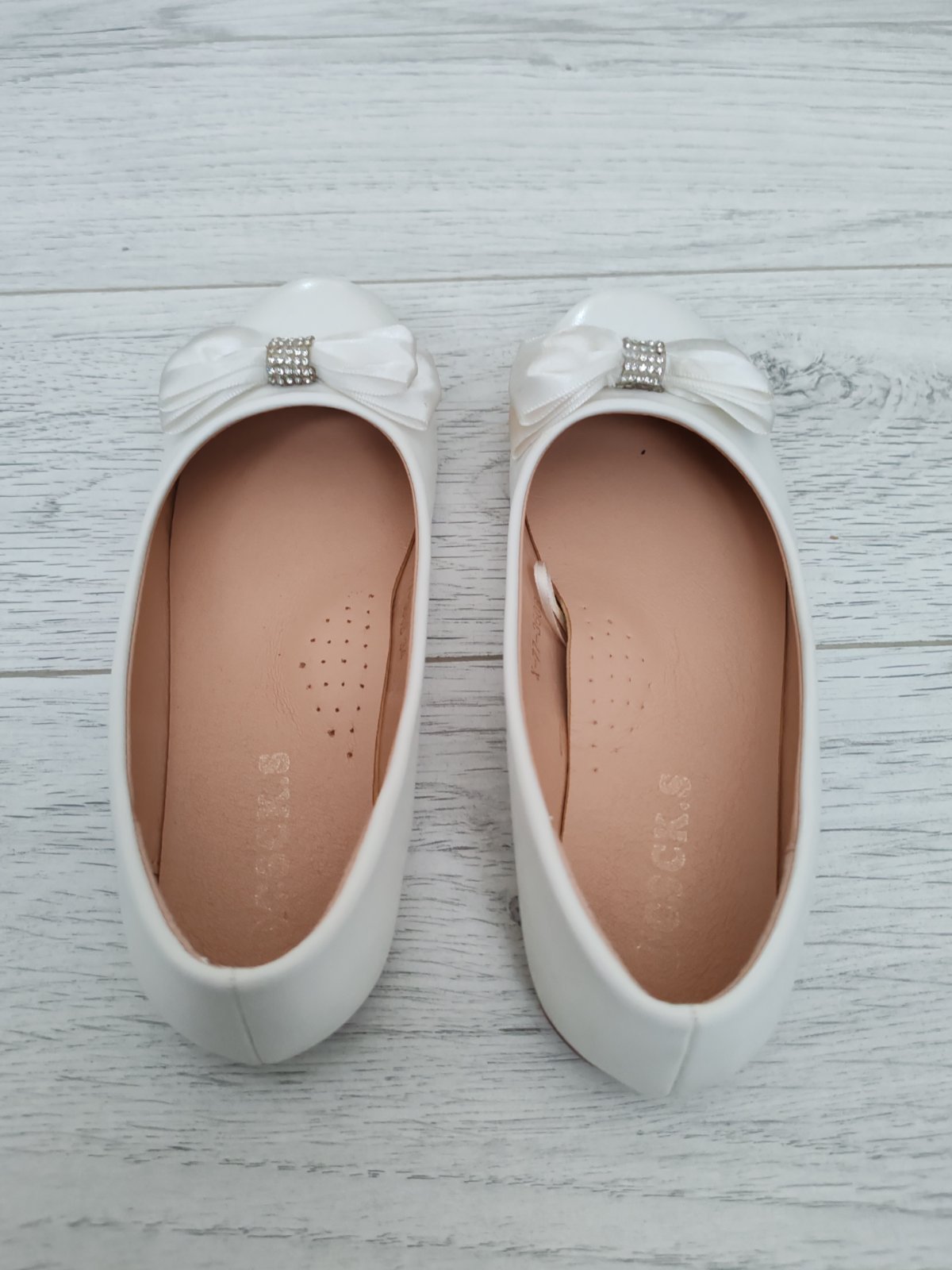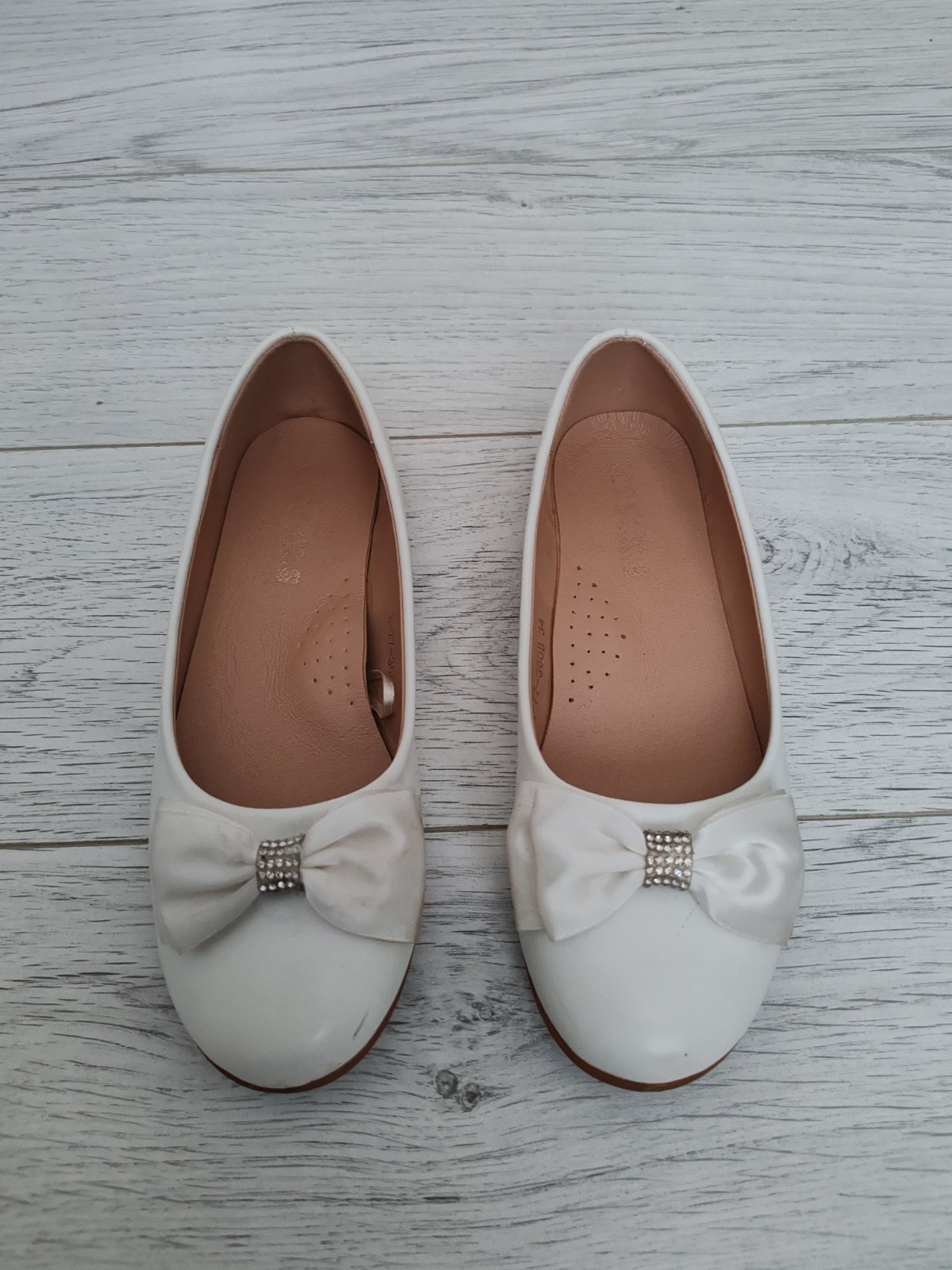 Dvoje biele balerínky vhodné na 1. sväté prijímanie, svadbu či inú príležitosť. Kupované sú v CCC. Zapínajú sa na pracku ktorá nastaví na správnu veľkosť a potom sa len zastrčí do druhej pracky. V...