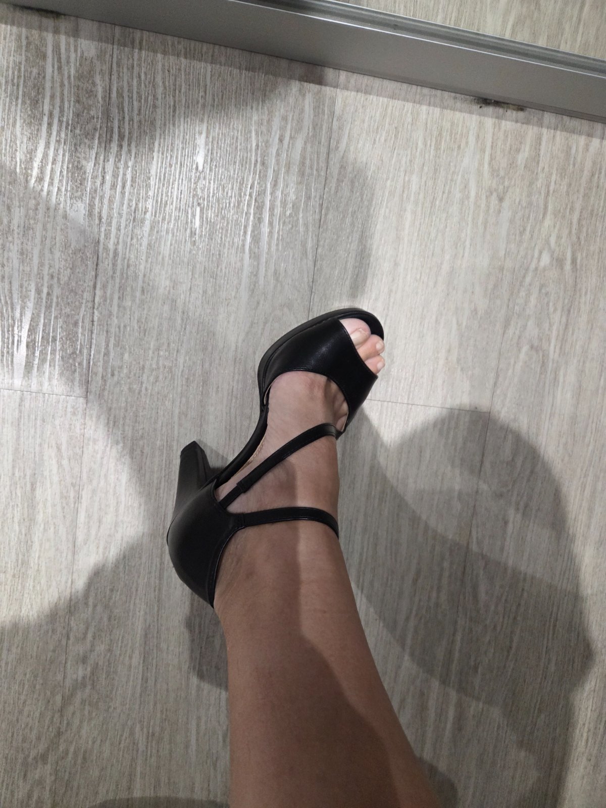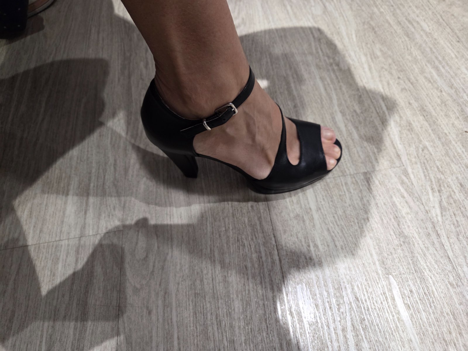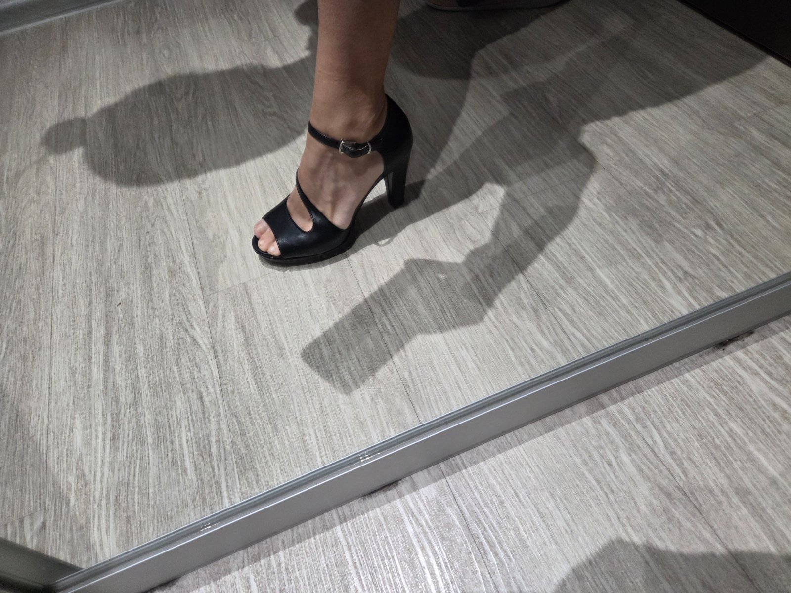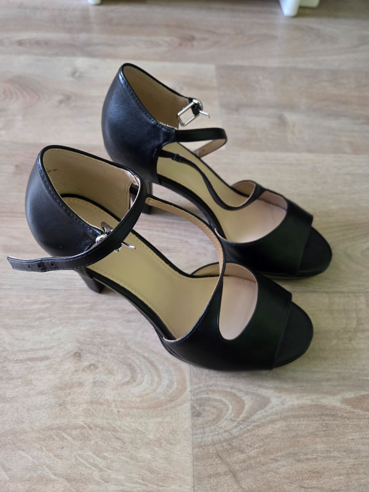 Lodičky na opätku s platformou. V zadnej časti zdobené čiernymi kamienkami. Sú pohodlné, no na mňa veľké, preto posúvan ďalej.