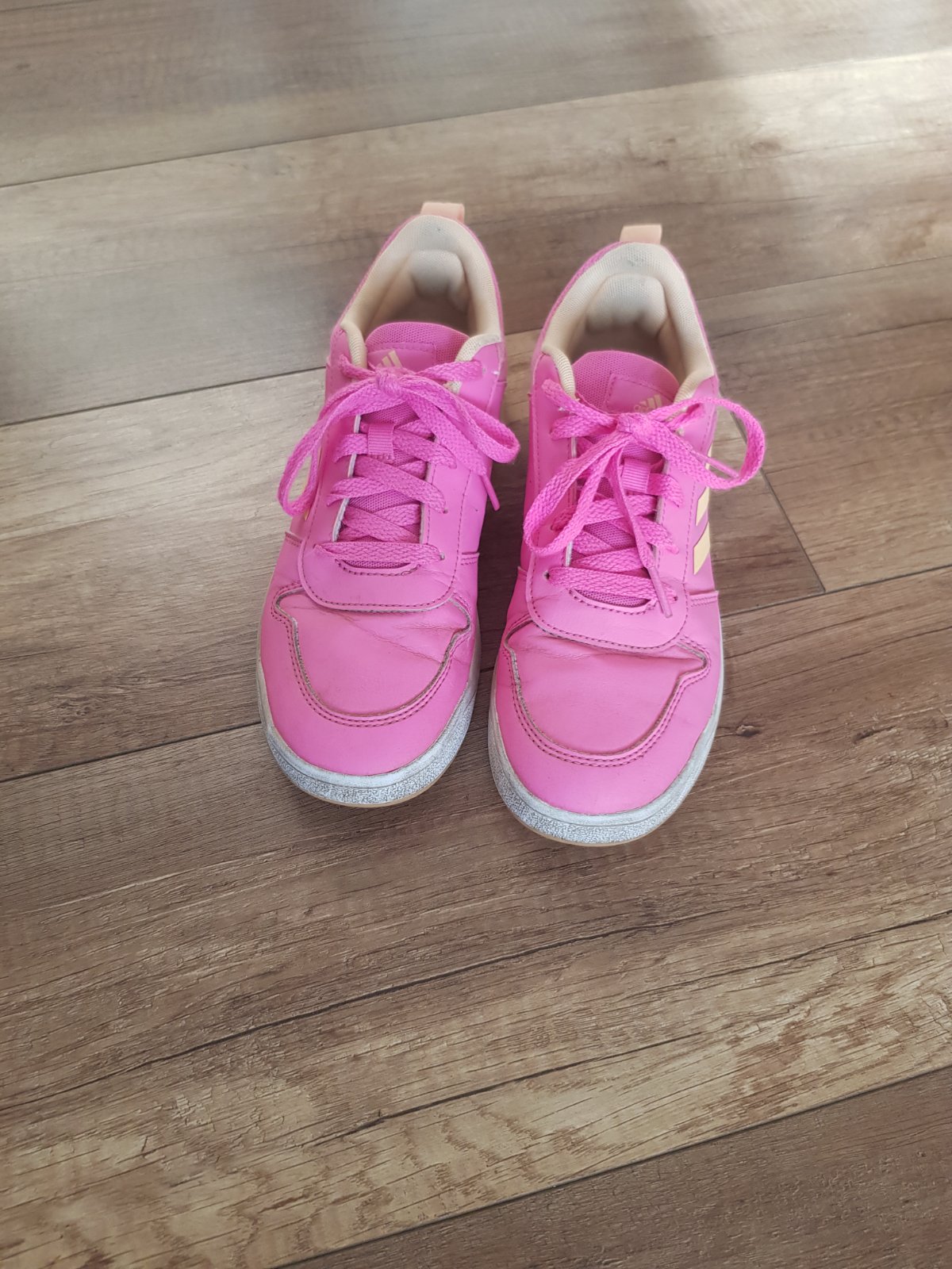 Dievčenské športové tenisky zn. Adidas, veľ.36 a 2/3. Non - marking podrážka. Veľmi pohodlné na nosenie. Nesú známky bežného používania (drobná trhlinka na bočnej strane) - viď foto. Pôvodná cena: ...