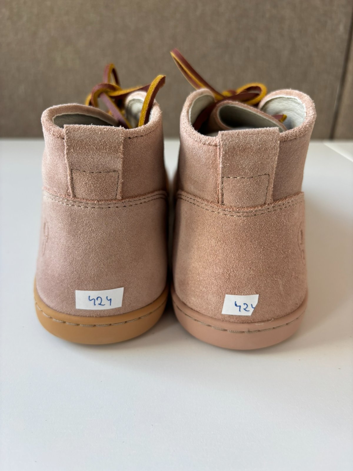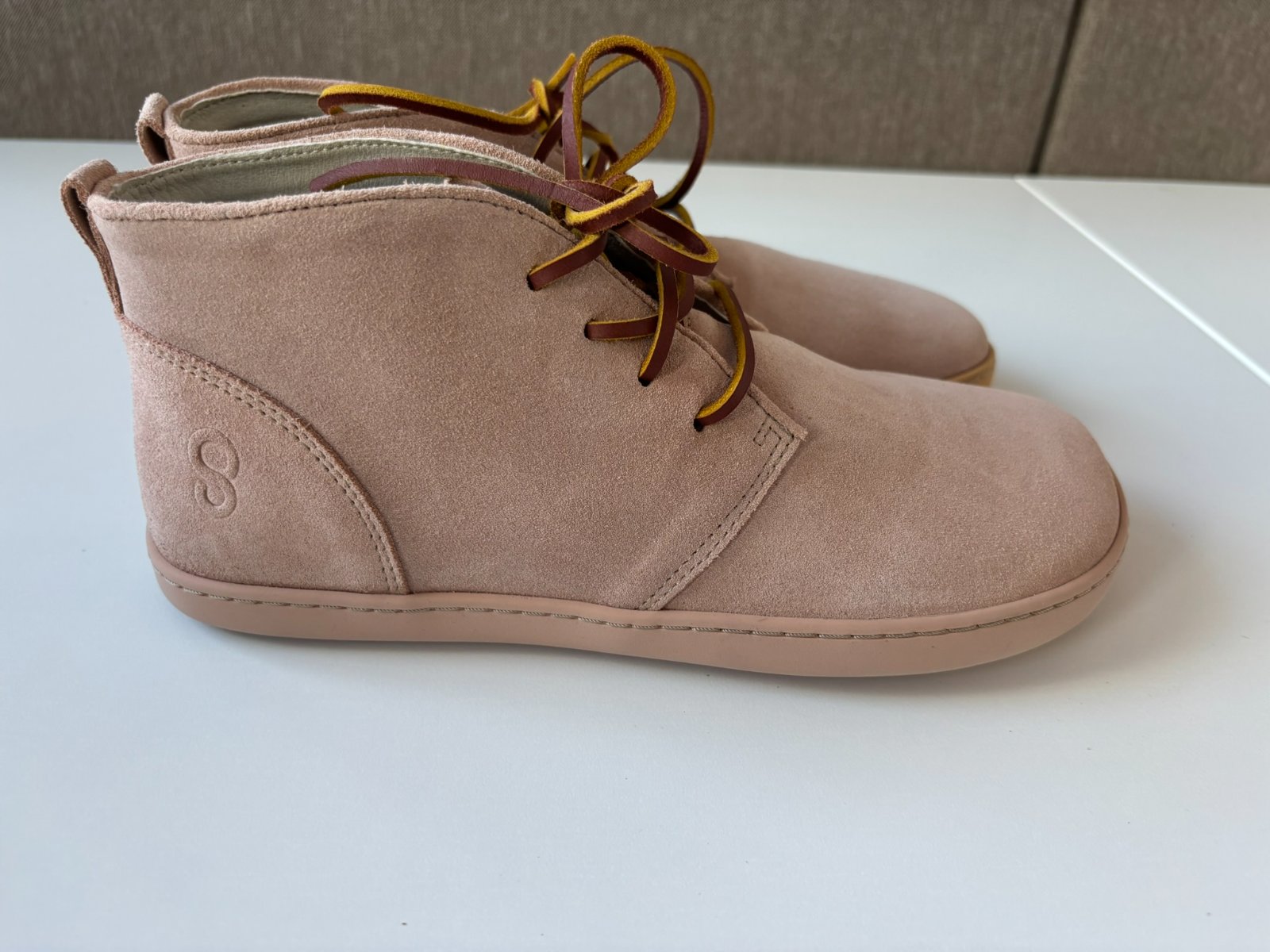- žltá podošva na ľavej topánke