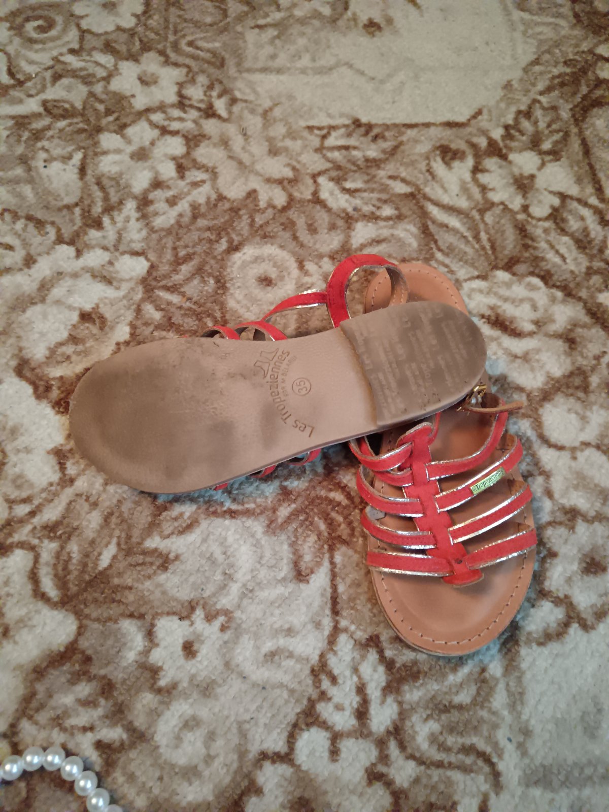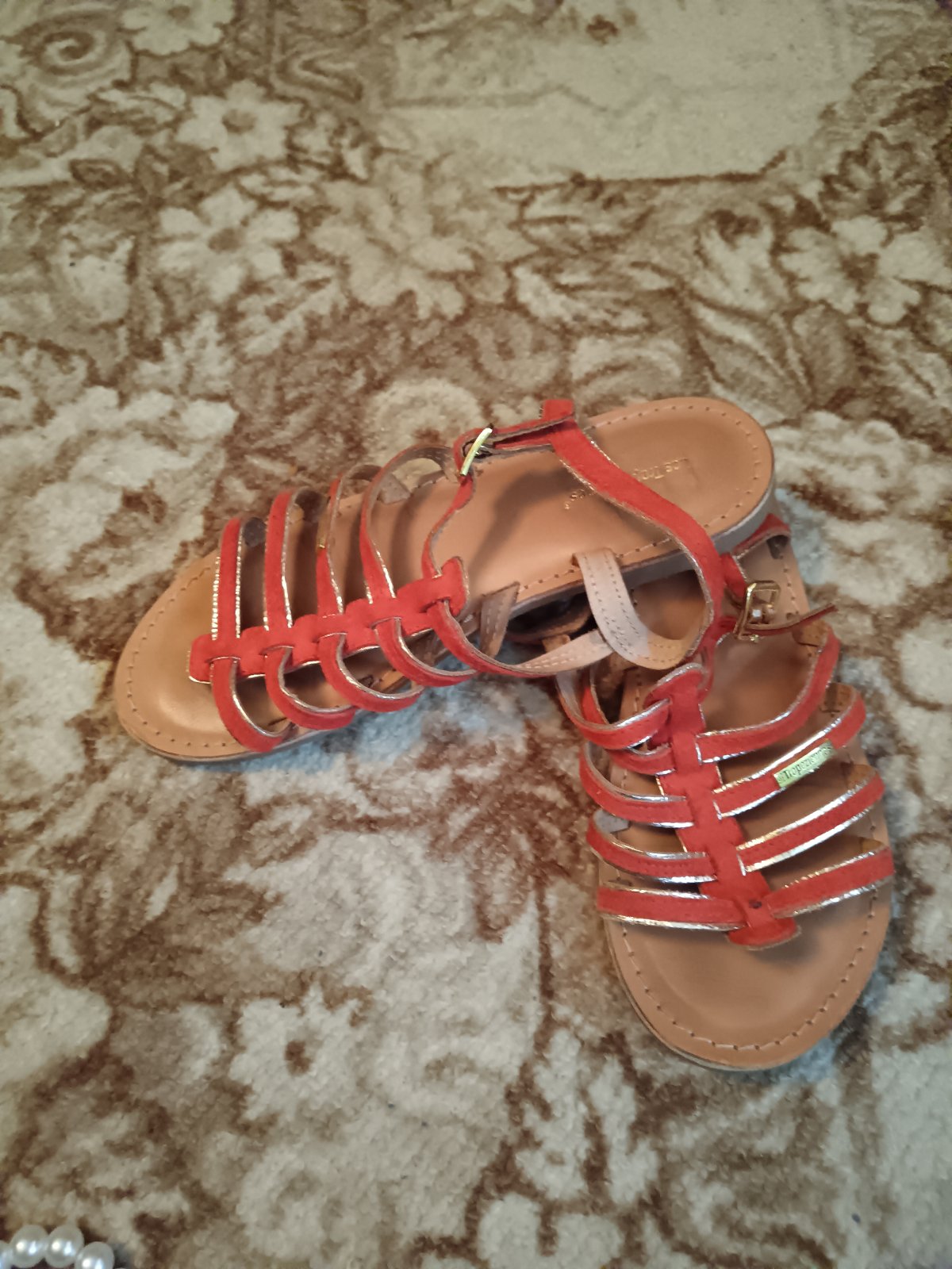 Predam krasne sandále v kombinácii so zlatou. S obyčajnou poštou. Farba tmavá oranžová so zlatou.
