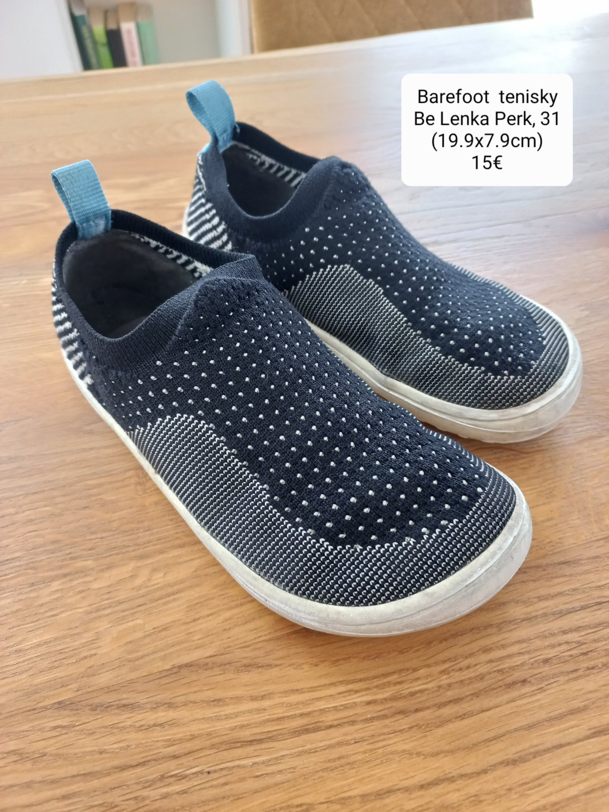 Nosene barefoot tenisky znacky Be Lenka, velkost 31 (19.9x7.9cm), material: polyester. Paty trochu osuchane, na jednej sa na boku ako sa noha ohyba odliepa podrazka - vid.foto, inac pekny noseny stav.