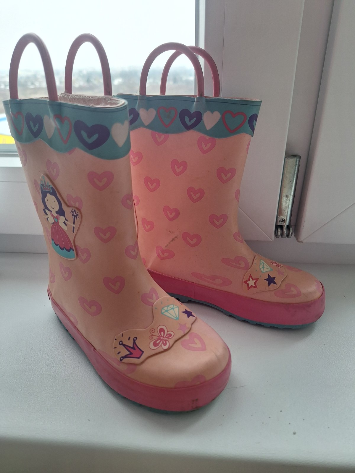 Malo nosene gunaky s princeznami. Pohodlne obuvanie s usami. Nezateplene. VD 16cm