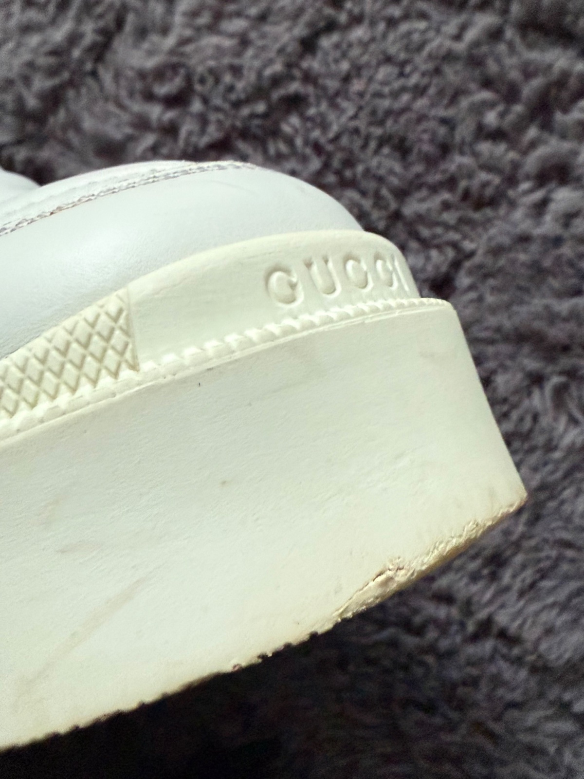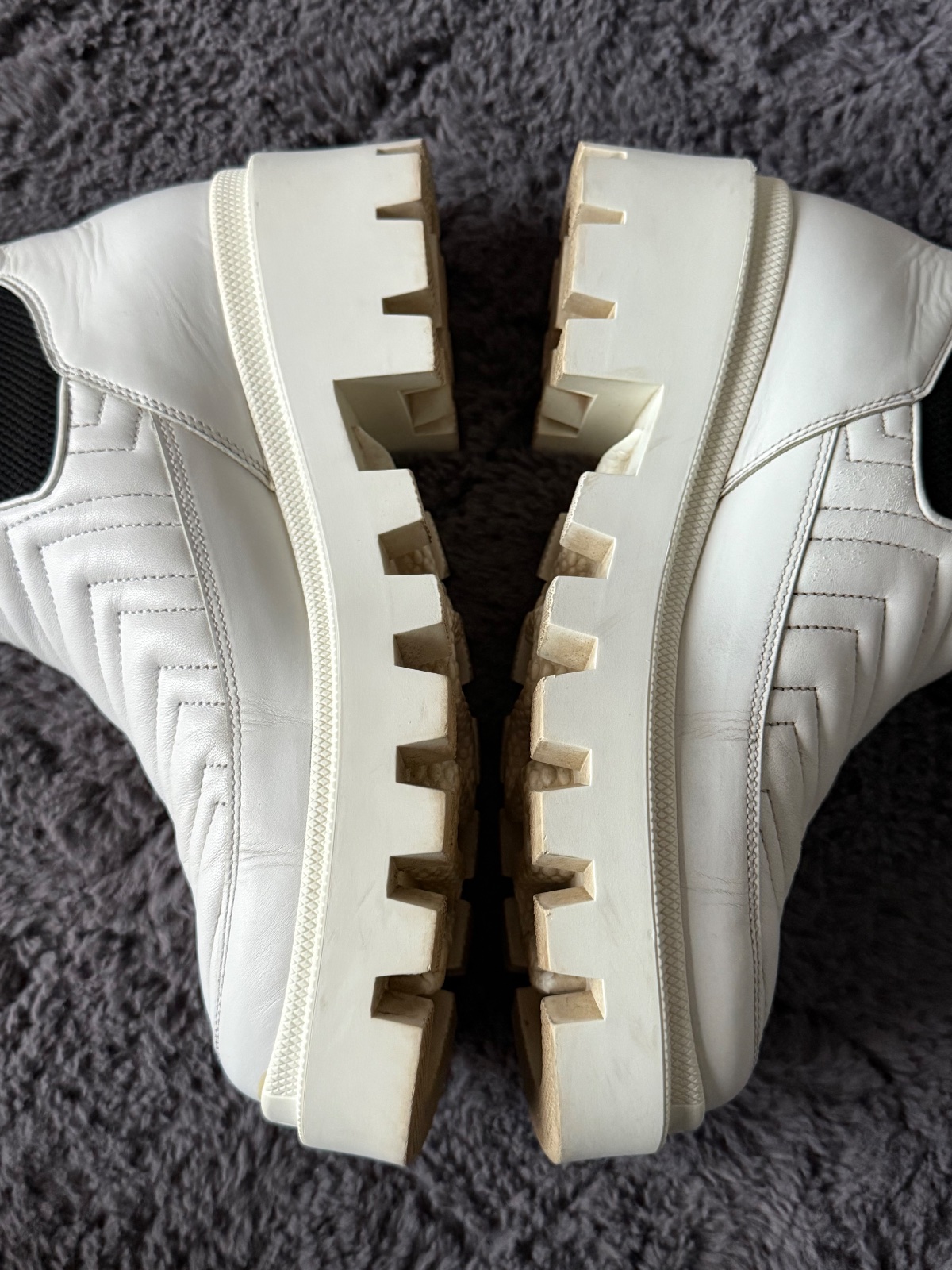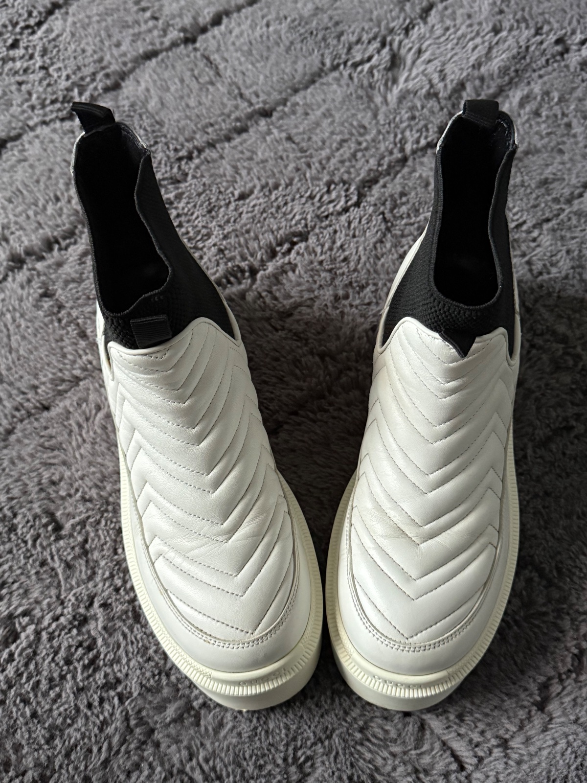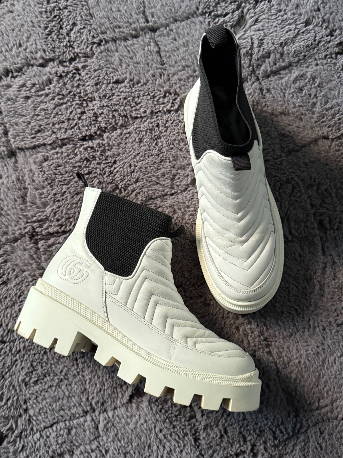Dámske členkové čižmy Gucci Matelassé Chelsea v bielej koži. Bežné známky nosenia bez vážneho poškodenia. Všetko je na fotkách. Velkost 38. Bez balenia.