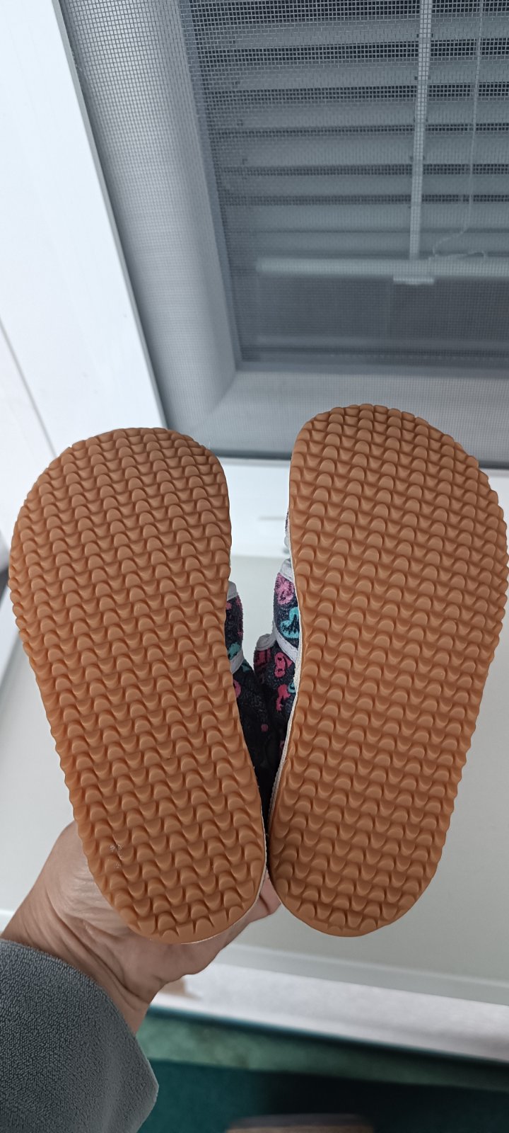 Nosené dvomi deťmi,majú známky nosenia,ale určite ešte poslúžia na doma. Jeden suchy zips drzi slabo,treba si prešit. Sú vyčistené,oprane