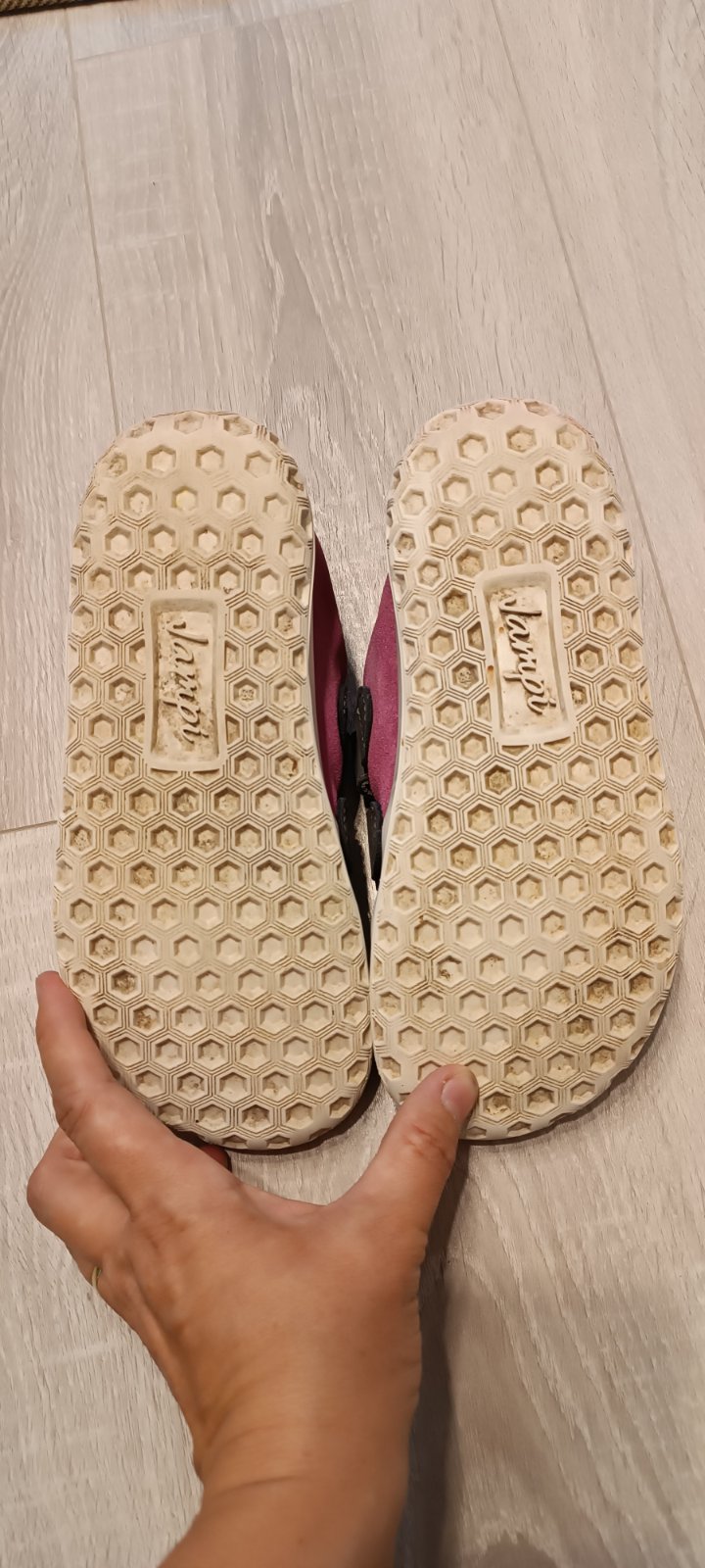 Predám cca polroka nosené topánky (od septembra do júna, ale počas celej zimy zimné topánky), čiže aj menej ako polroka. Nezničené, neschodené. Chcela som ich očistiť pred fotením handričkou, no deti ma nepochopili a namočili ich celé do vody, sú teda vyčistené pod tečúcou vodou, vysušené, nesmrdia.