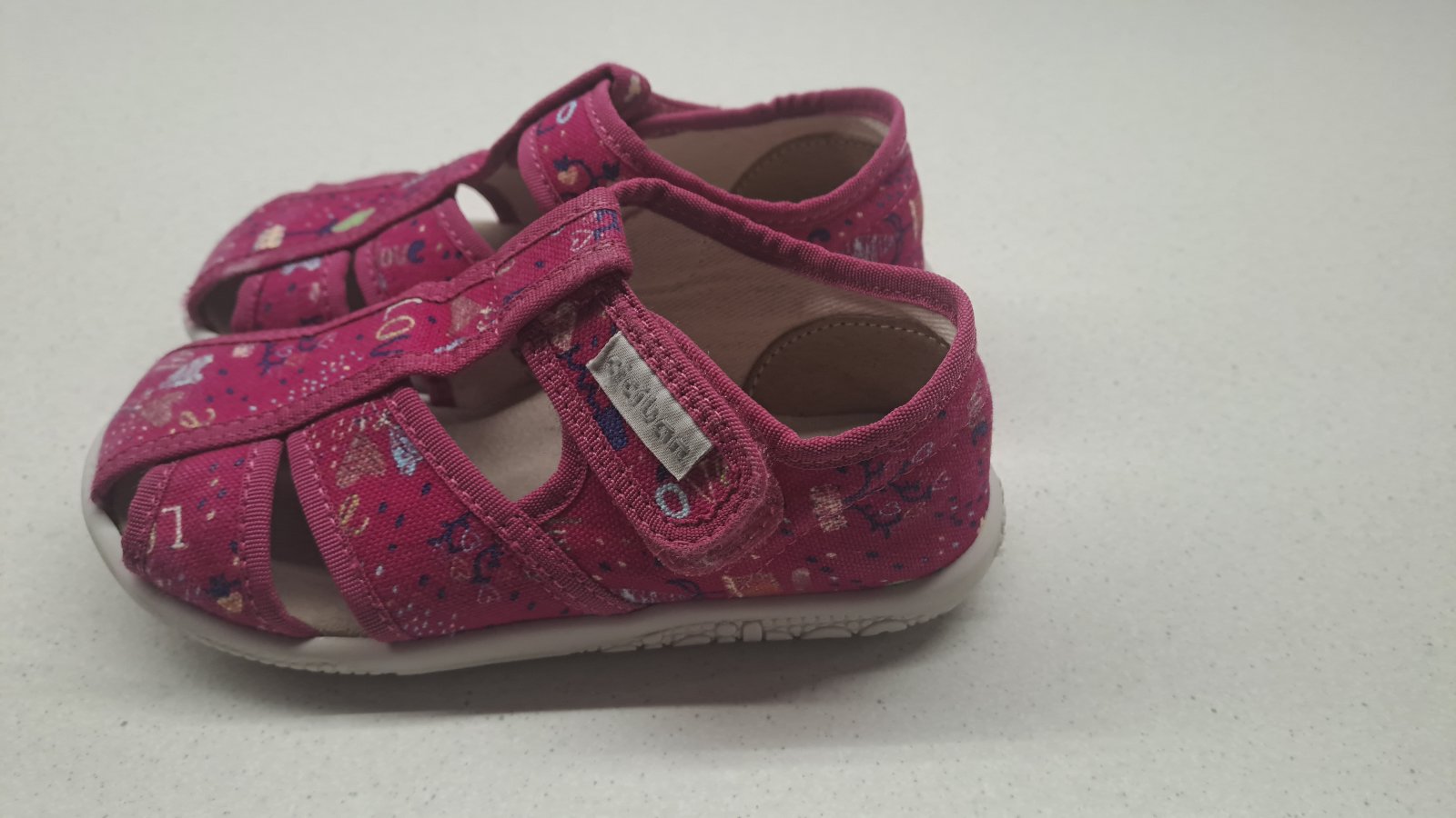 Detské papučky z prírodného textilného materiálu sandálkového typu so zatvorenou špičkou. Podošva je vyrobená z mäkkého, ale odolného styroporu. - zatváranie je na suchý zips - papučky sú vhodné...