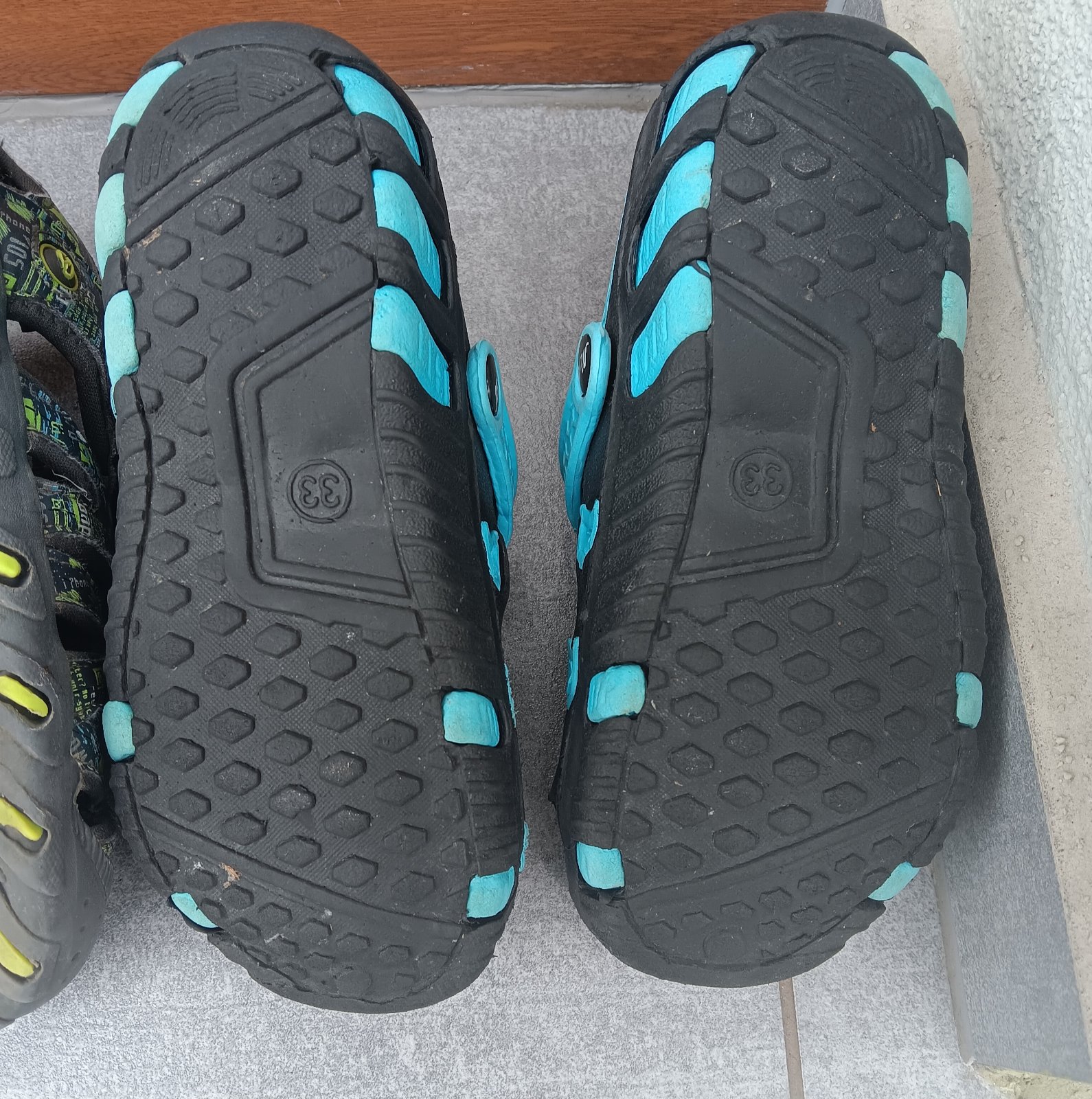 Kroksy, píšu veľ. 33, ale sú menšie, skôr veľ. 30, vnútorná dĺžka 19 cm, cena 1,50€.