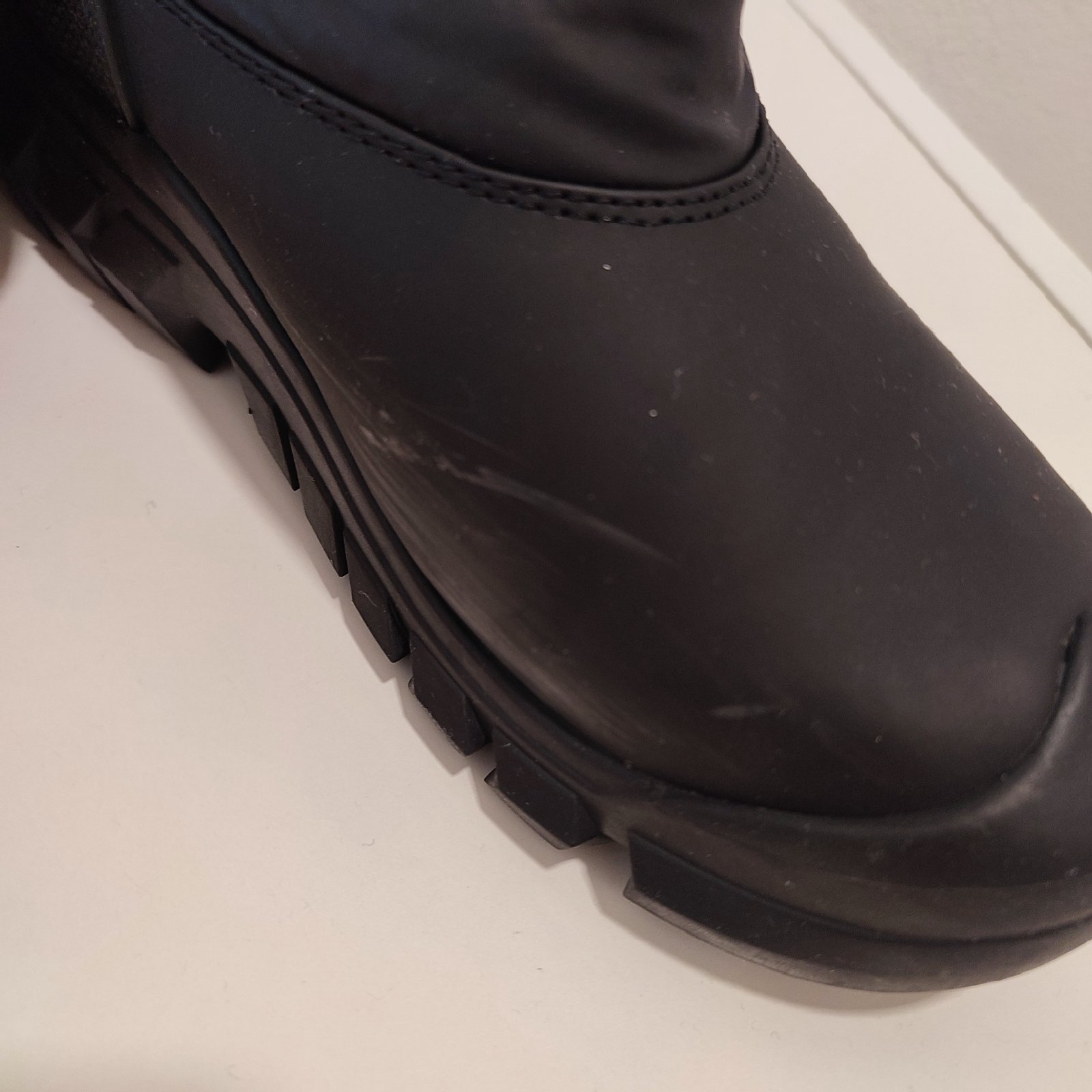 Gumená časť čižmy z vnútornej strany šuchnuté (pozri foto), ale to sa na gume bežne stáva. Nie je skoro vôbec vidieť.